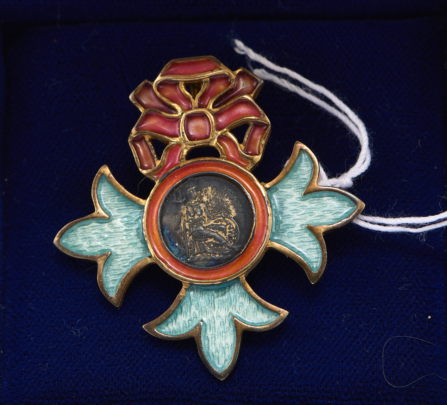 AN ENAMELLED BRITISH EMPIRE BROOCH FROM THE GILBEY JUBILEE COLLECTION, 35 X 37MM, BOXED