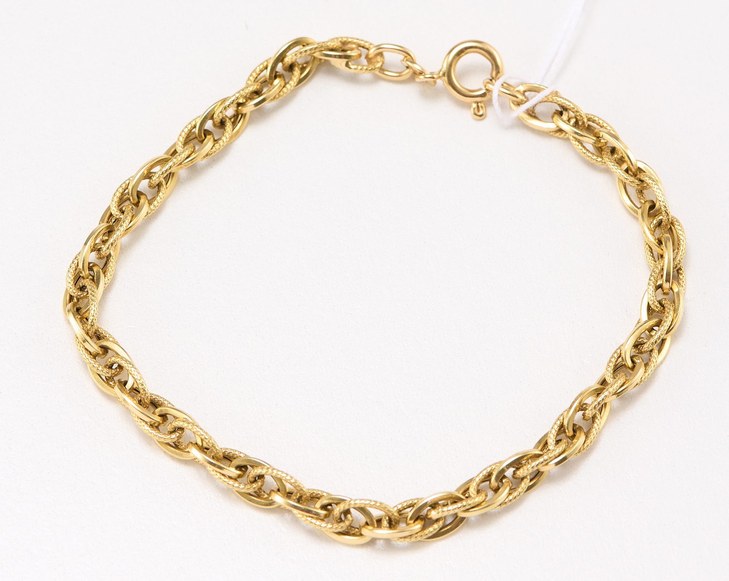 A FANCY LINK BRACELET IN 18CT GOLD, TOTAL LENGTH APPROXIMATLEY 186MM, 4.9GMS