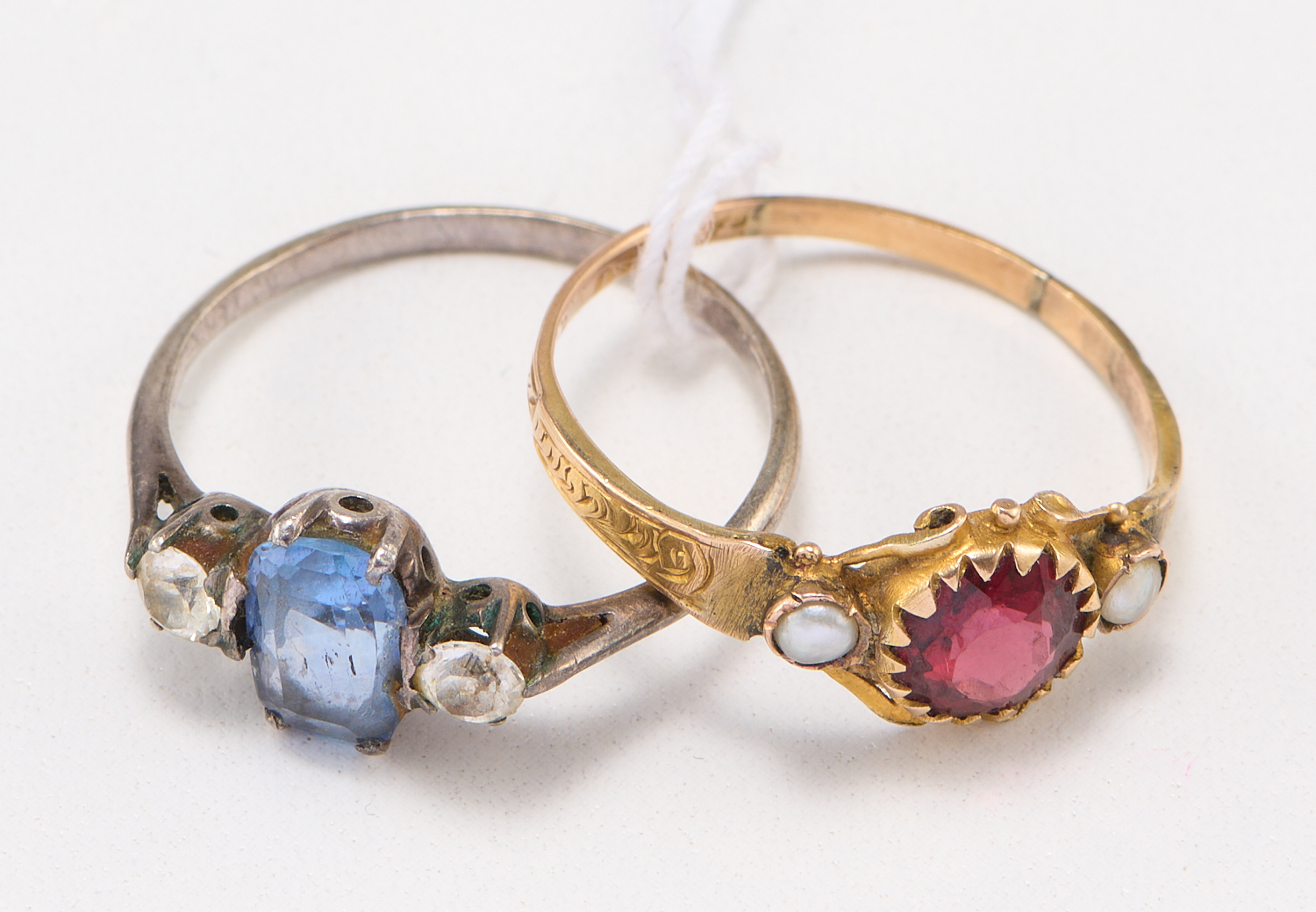 TWO VINTAGE GEM-SET RINGS ONE IN 12CT GOLD (1.3GMS) AND ONE IN SILVER, RING SIZES M AND L