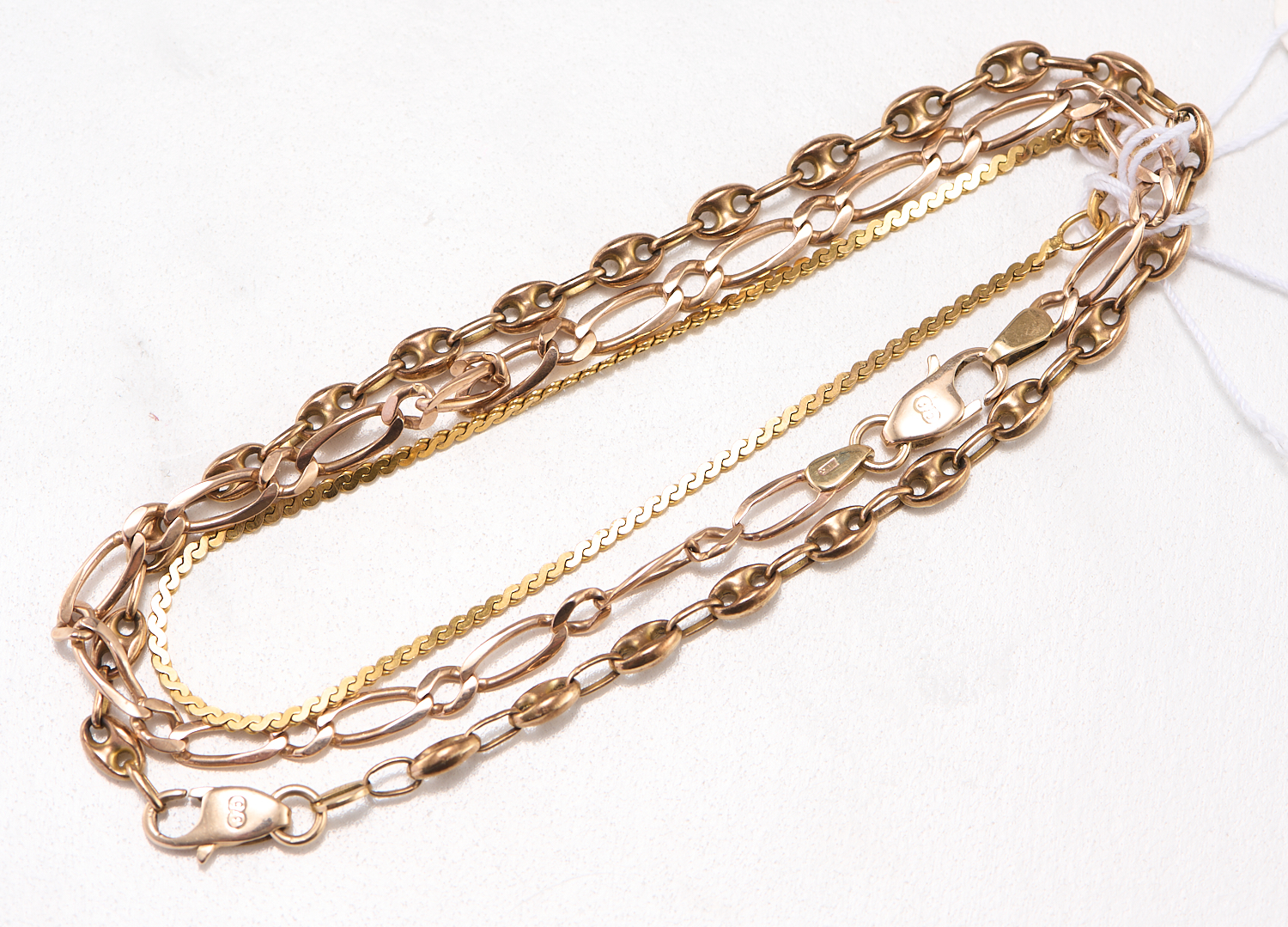 A COLLECTION OF THREE FANCY LINK BRACELETS IN 9CT GOLD, 8.535GMS