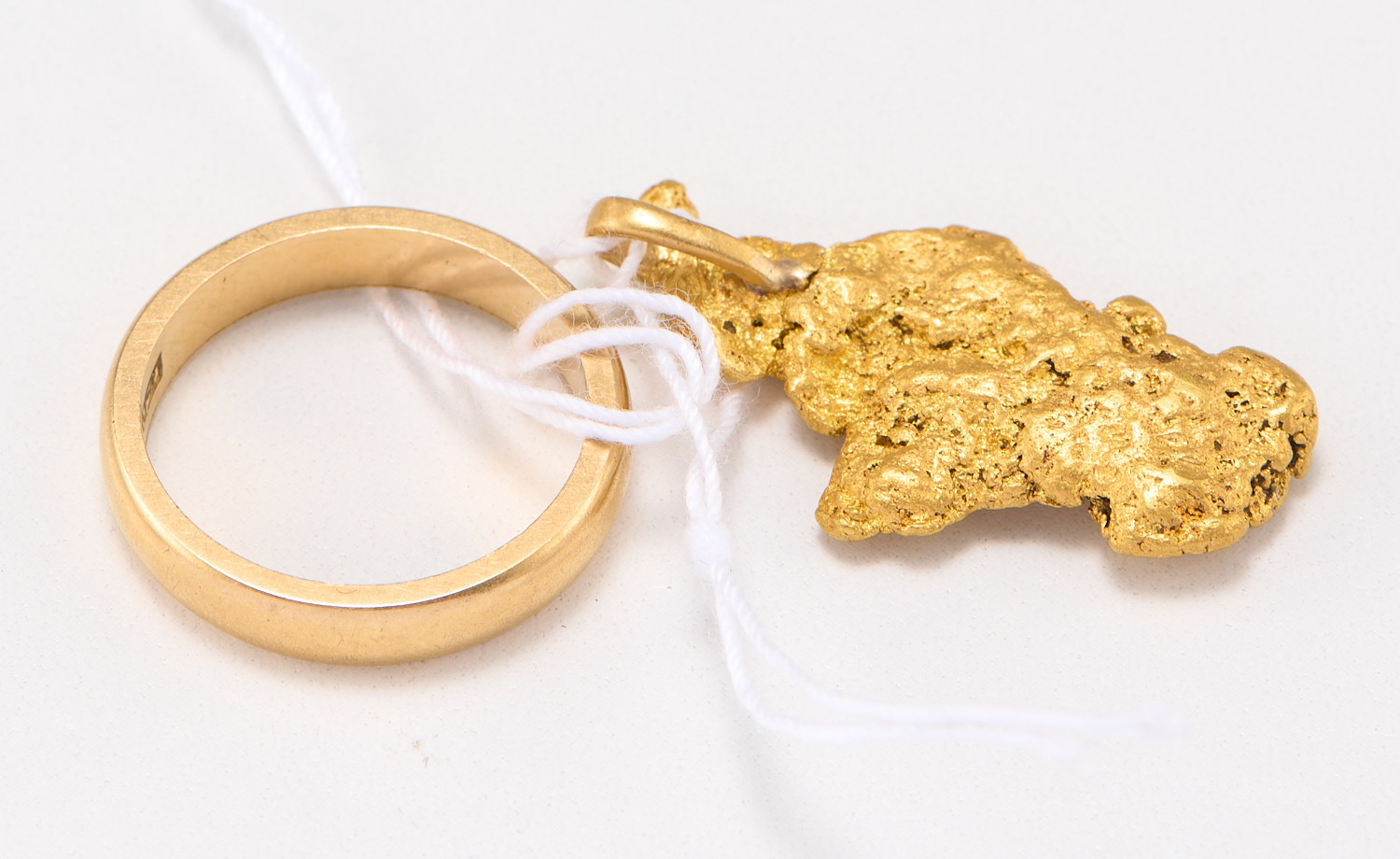 A KALGOORLIE GOLD NUGGET AND A WEDDER IN 18CT GOLD, RING SIZE K, 10.60GMS