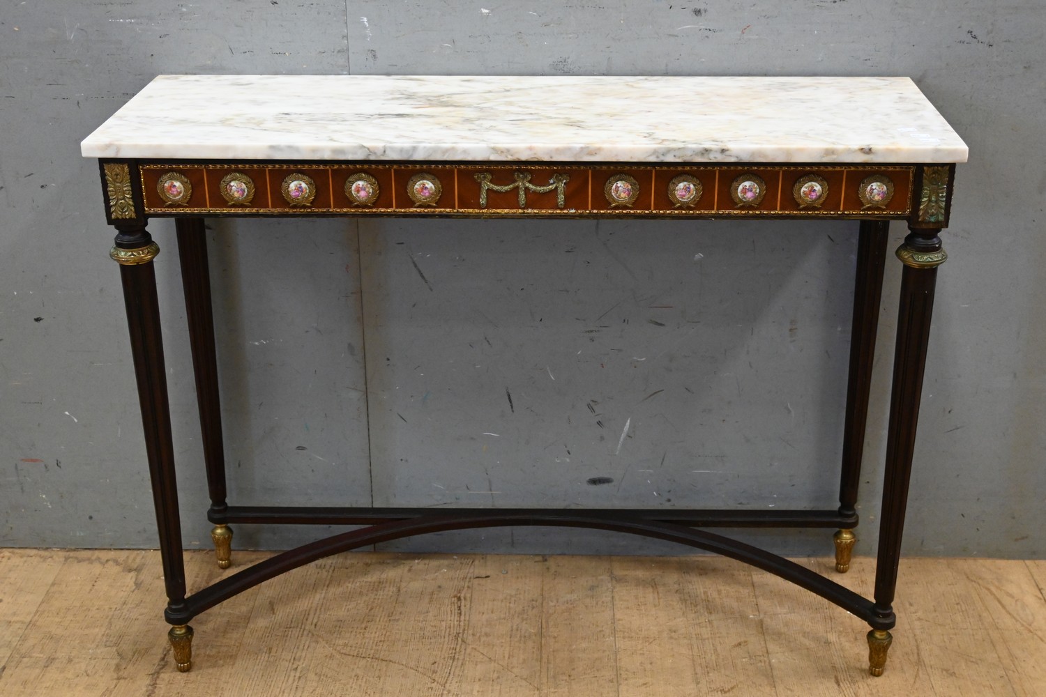 A LOUIS XVI STYLE MARBLE TOP CONSOLE (A/F) (77H X 103W X 34D CM) (LEONARD JOEL DELIVERY SIZE: X-LARGE)