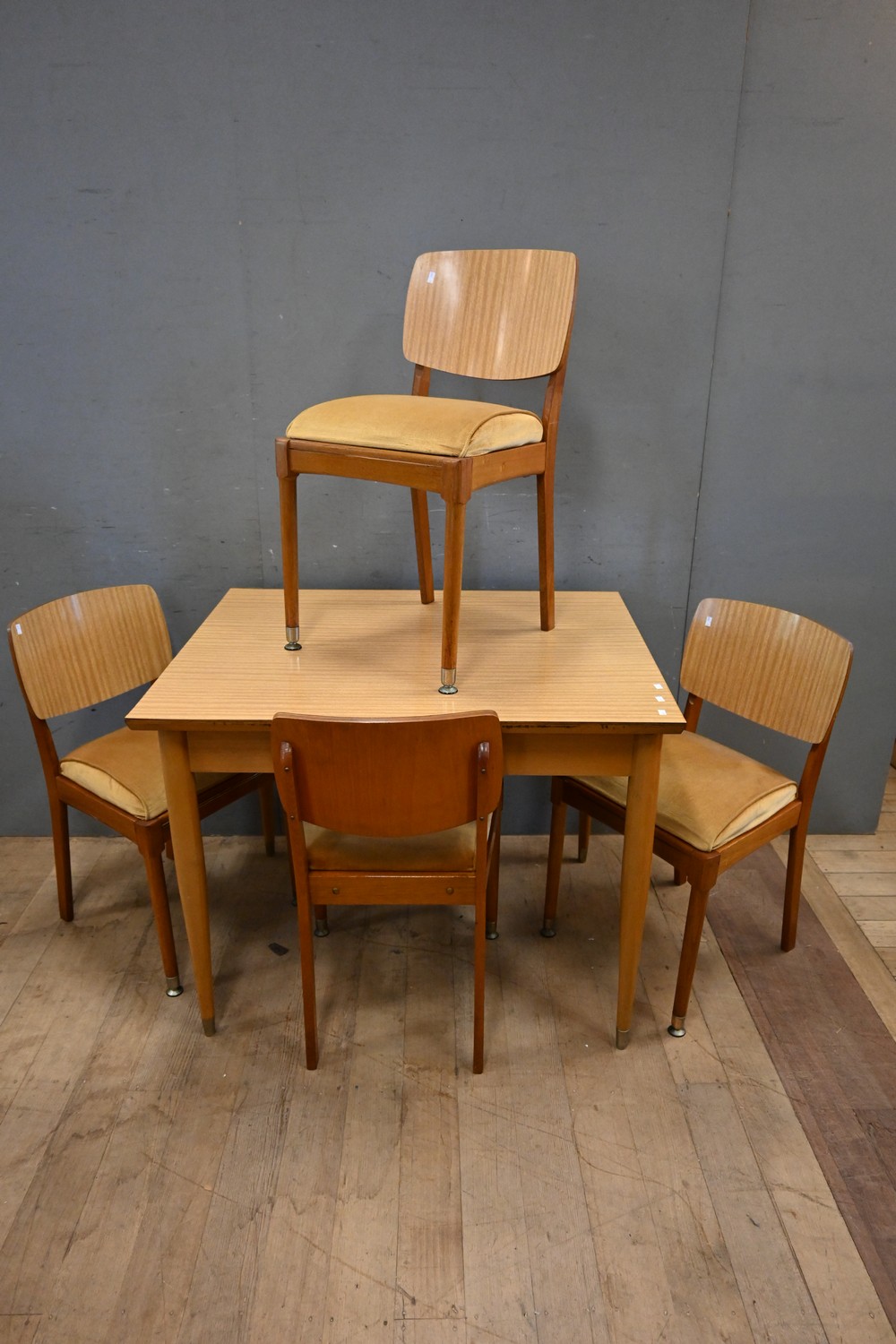 A FIVE PIECE RETRO DINING SETTING (A/F) (76H X 99W X 81D CM) (LEONARD JOEL DELIVERY SIZE: X-LARGE)