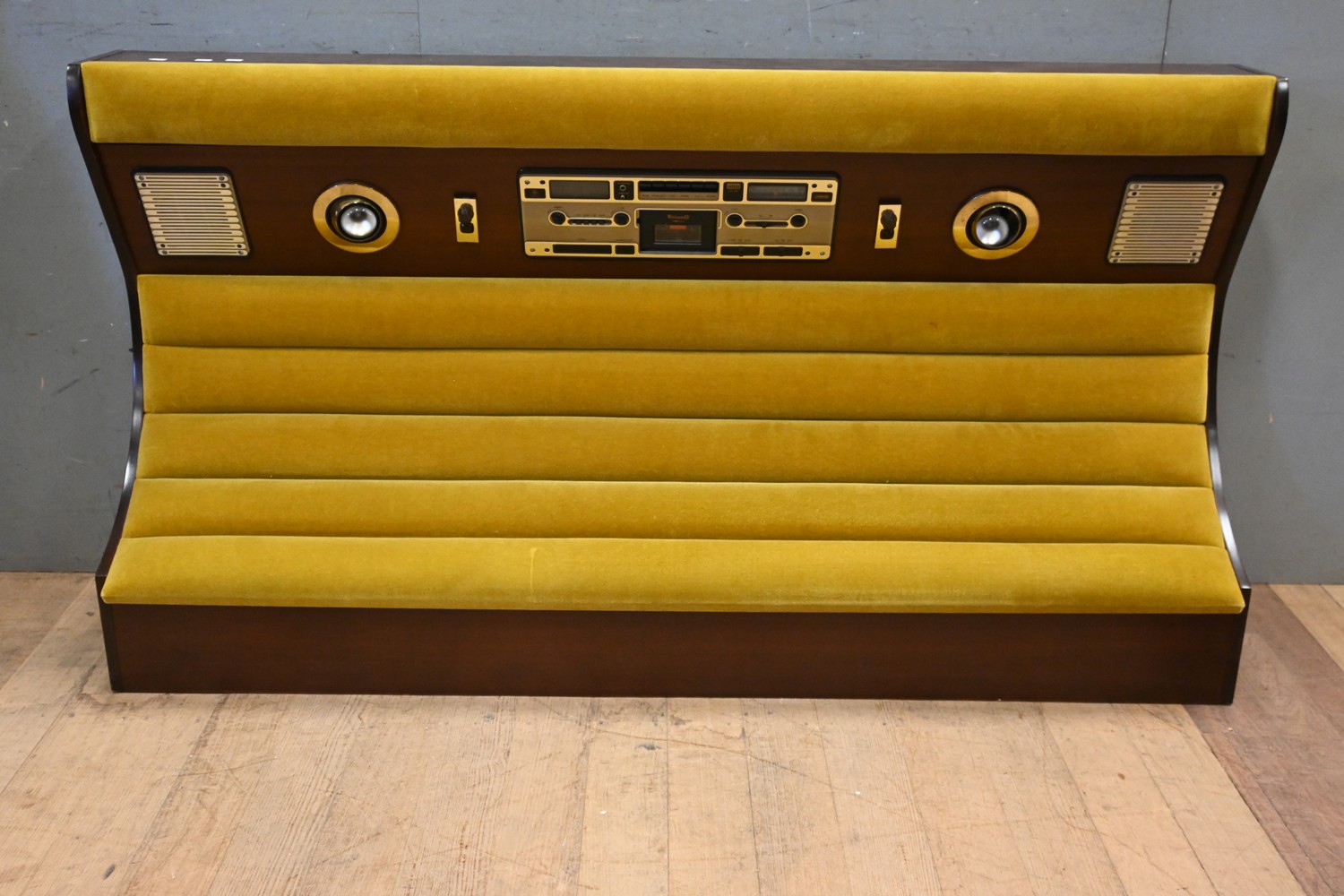 A 1970'S UPHOLSTERED BED HEAD (A/F) (87H X 162W X 34D CM) (PLEASE NOTE THIS HEAVY ITEM MUST BE REMOVED BY CARRIERS AT THE CUSTOMER'S EXPENSE. LEONARD JOEL STAFF CANNOT ASSIST CARRYING THIS ITEM) (X-LARGE ITEM)