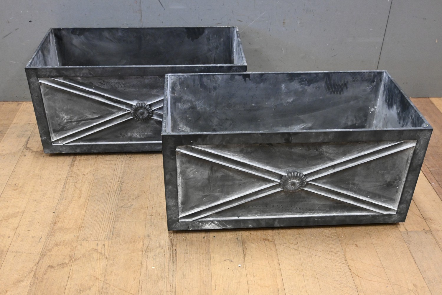 A PAIR OF LARGE METAL PLANTERS (40H X 80W X 40D CM) (LEONARD JOEL DELIVERY SIZE: X-LARGE)
