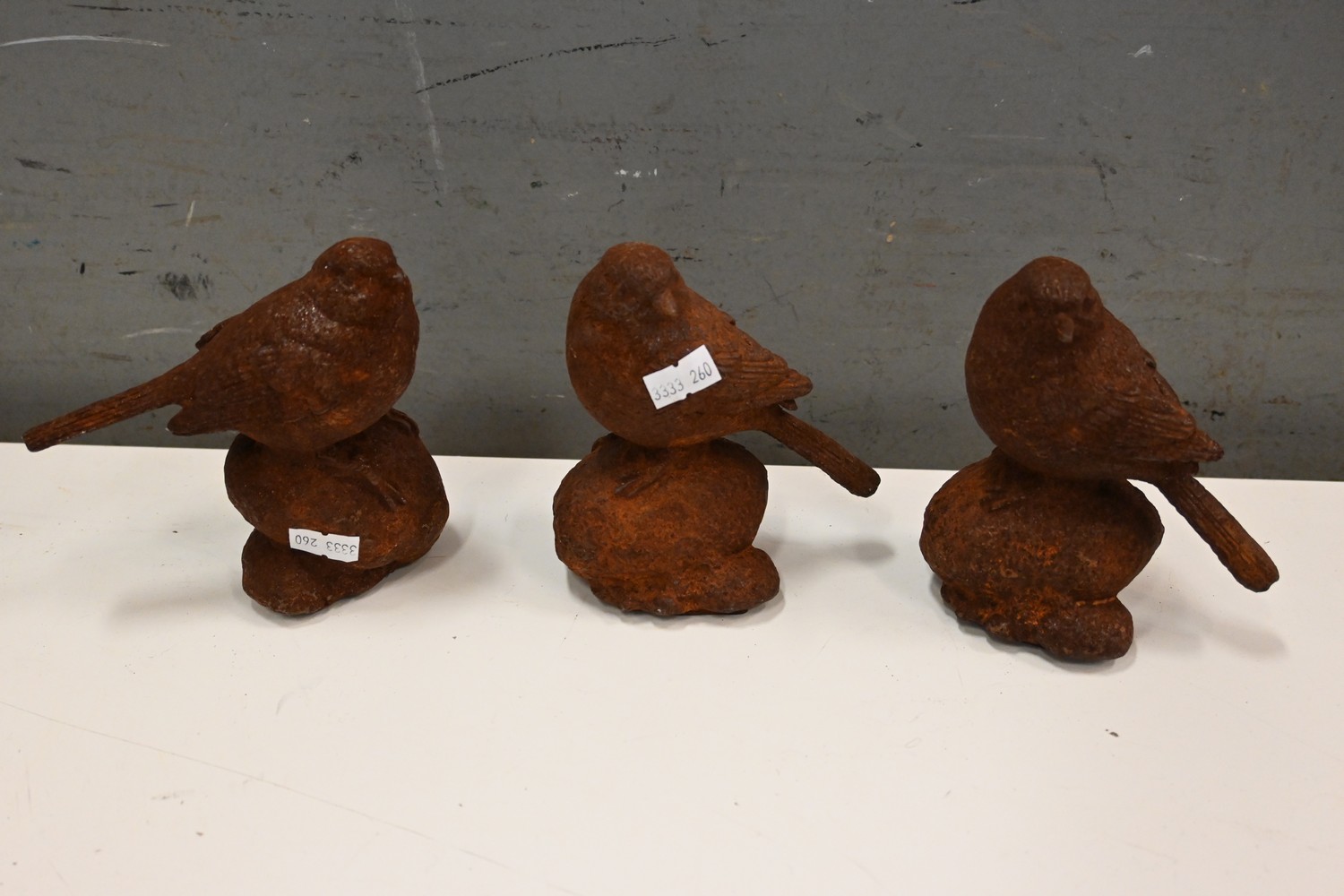 THREE CAST IRON BIRDIES (13H CM) (LEONARD JOEL DELIVERY SIZE: SMALL)