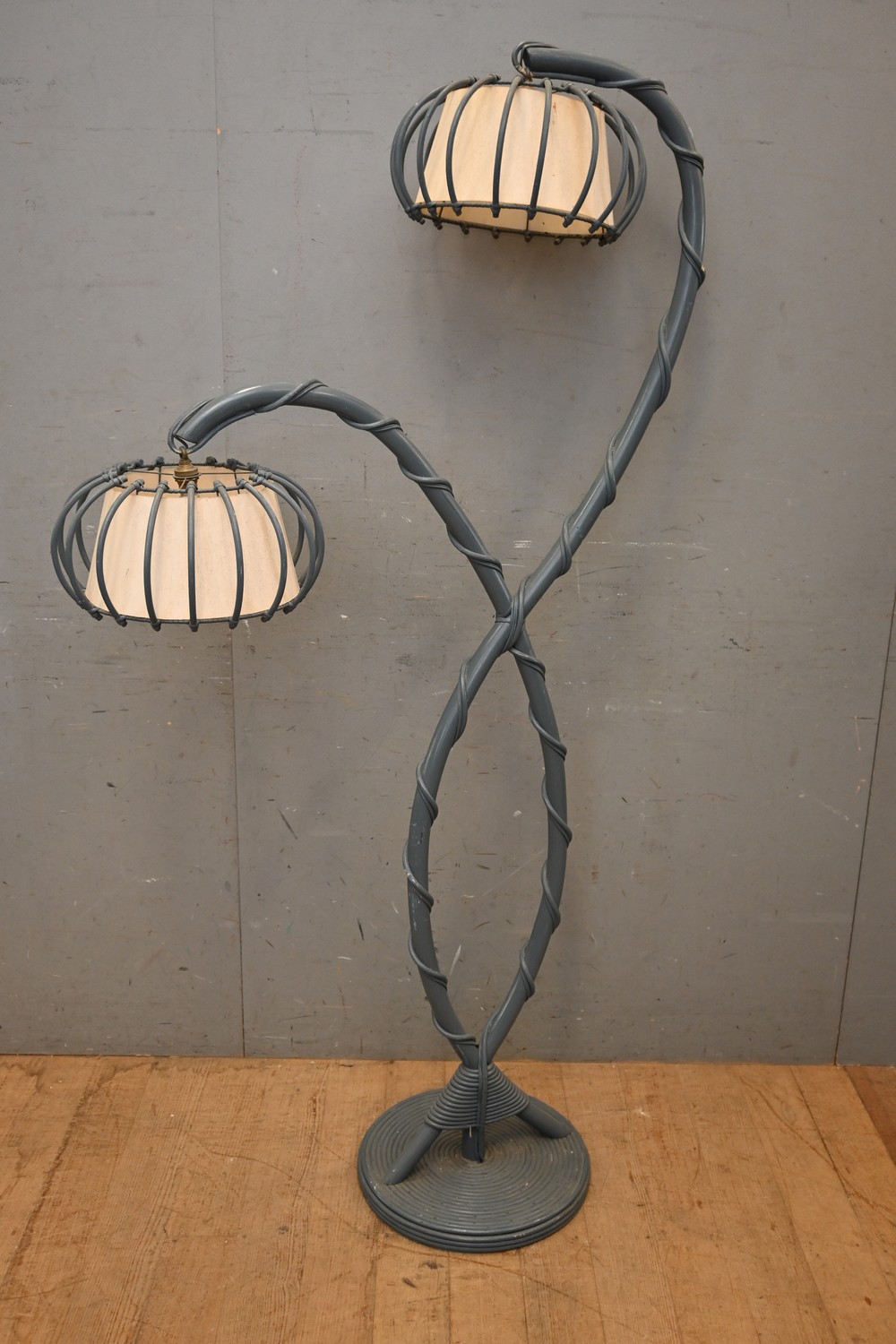 A FRENCH MID CENTURY RATTAN FLOOR LAMP - NEEDS REWIRING (A/F) (173H X 100W CM) (LEONARD JOEL DELIVERY SIZE: X-LARGE)