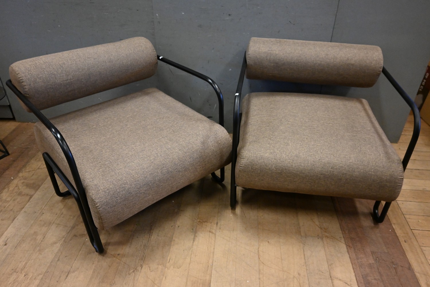 A PAIR OF MODERNIST STYLE LOUNGE CHAIRS ( 76H X 80W X 91 D CM) (PLEASE NOTE THIS HEAVY ITEM MUST BE REMOVED BY CARRIERS AT THE CUSTOMER'S EXPENSE. LEONARD JOEL STAFF CANNOT ASSIST CARRYING THIS ITEM) (X-LARGE ITEM)