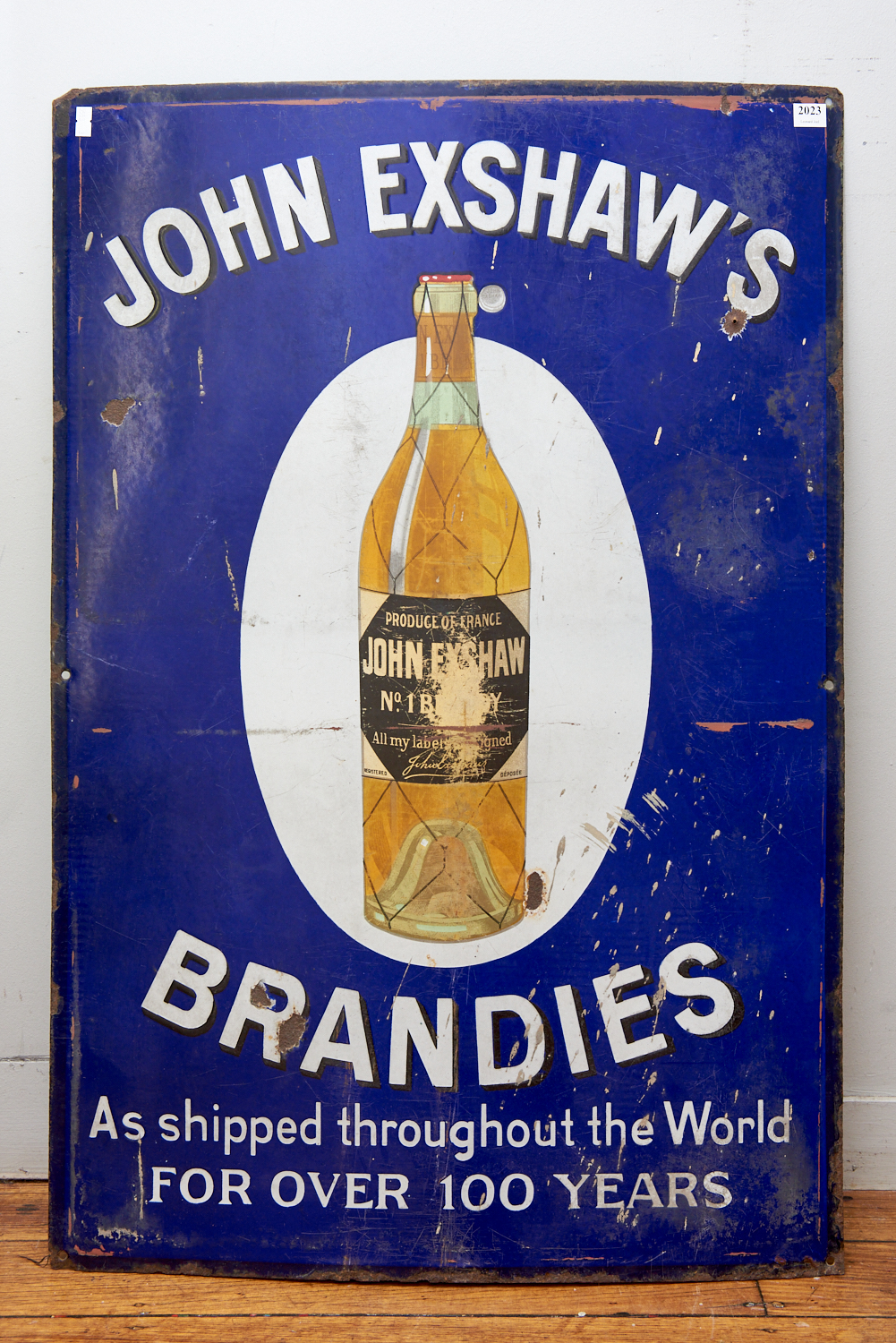 JOHN EXSHAW BRANDIES ENAMEL ADVERTISING SIGN H.81CM X W.60CM, LEONARD JOEL LOCAL DELIVERY: MEDIUM
