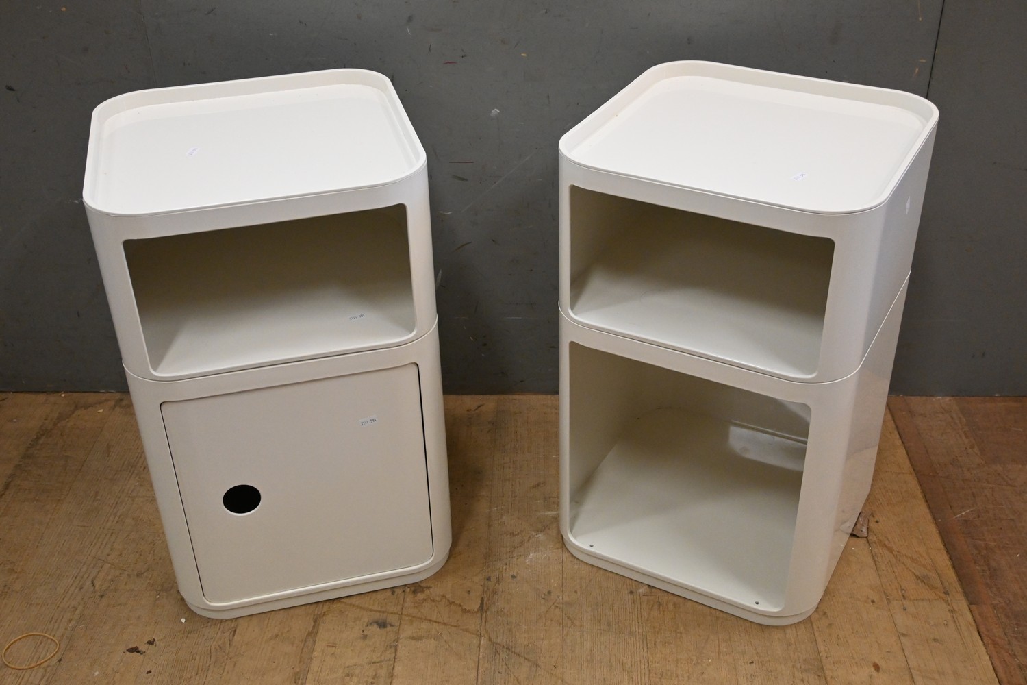 TWO KARTELL TWO TIER SQUARE FORM WHITE SIDE TABLE CABINETS (A/F) ( 60H X 38W X 38D CM) (LEONARD JOEL DELIVERY SIZE: MEDIUM)