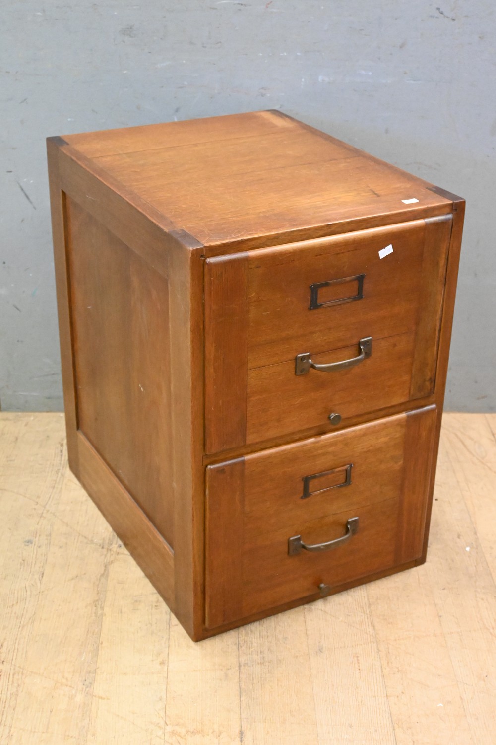 A 1920S AUSTRALIAN OAK TWO DRAW FILING CABINET (A/F) (64H X 44W X 57D CM) (LEONARD JOEL DELIVERY SIZE: LARGE)