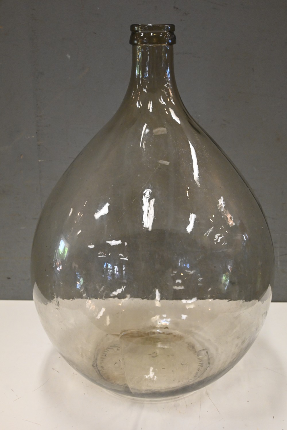 AN ITALIAN GLASS DEMIJOHN WITH AMBROSIO NAME TO RIM (70H X 50D CM) (LEONARD JOEL DELIVERY SIZE: MEDIUM)
