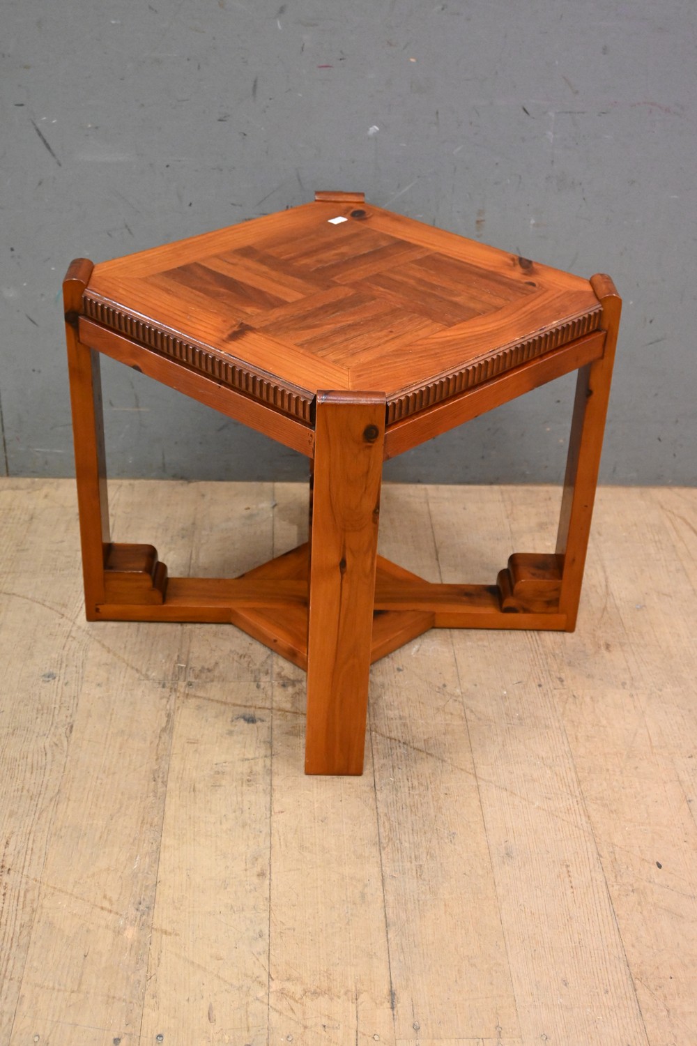 AN AUSTRALIAN BLACKWOOD ART DECO STYLE INLAID OCCASIONAL TABLE (A/F) (43H X 45W X 45D CM) (LEONARD JOEL DELIVERY SIZE: MEDIUM)