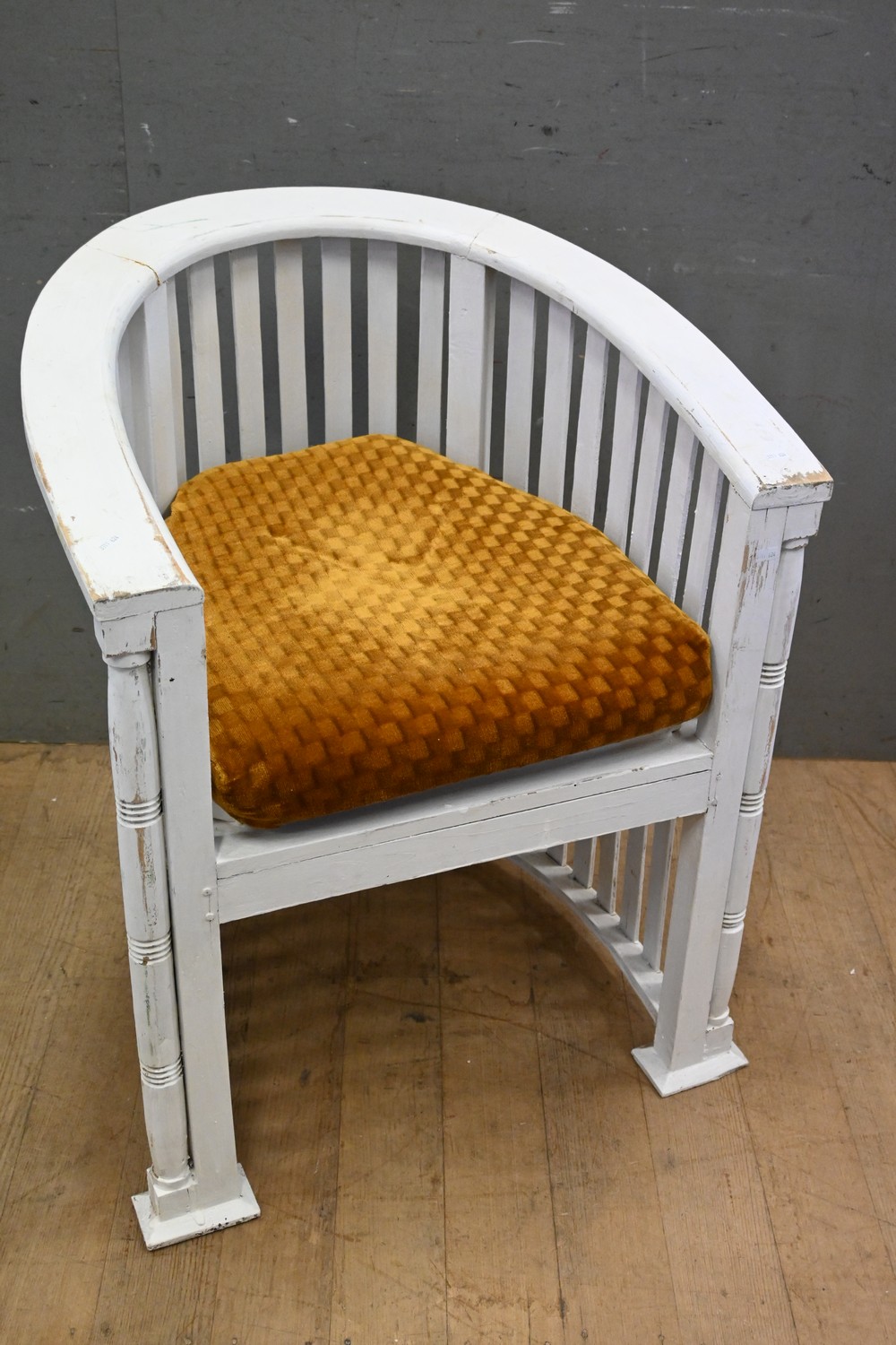 A 1920'S BOW BACKED ARMCHAIR (A/F) (82H X 66W X 60D CM) (LEONARD JOEL DELIVERY SIZE: LARGE)