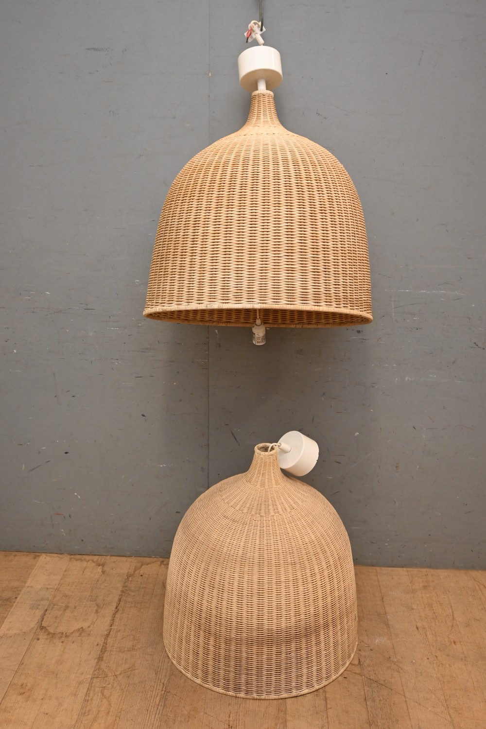 A PAIR OF OVERSIZED ITALIAN WOVEN CANE CEILING LIGHT SHADES (60H X 60D CM) (LEONARD JOEL DELIVERY SIZE: LARGE)