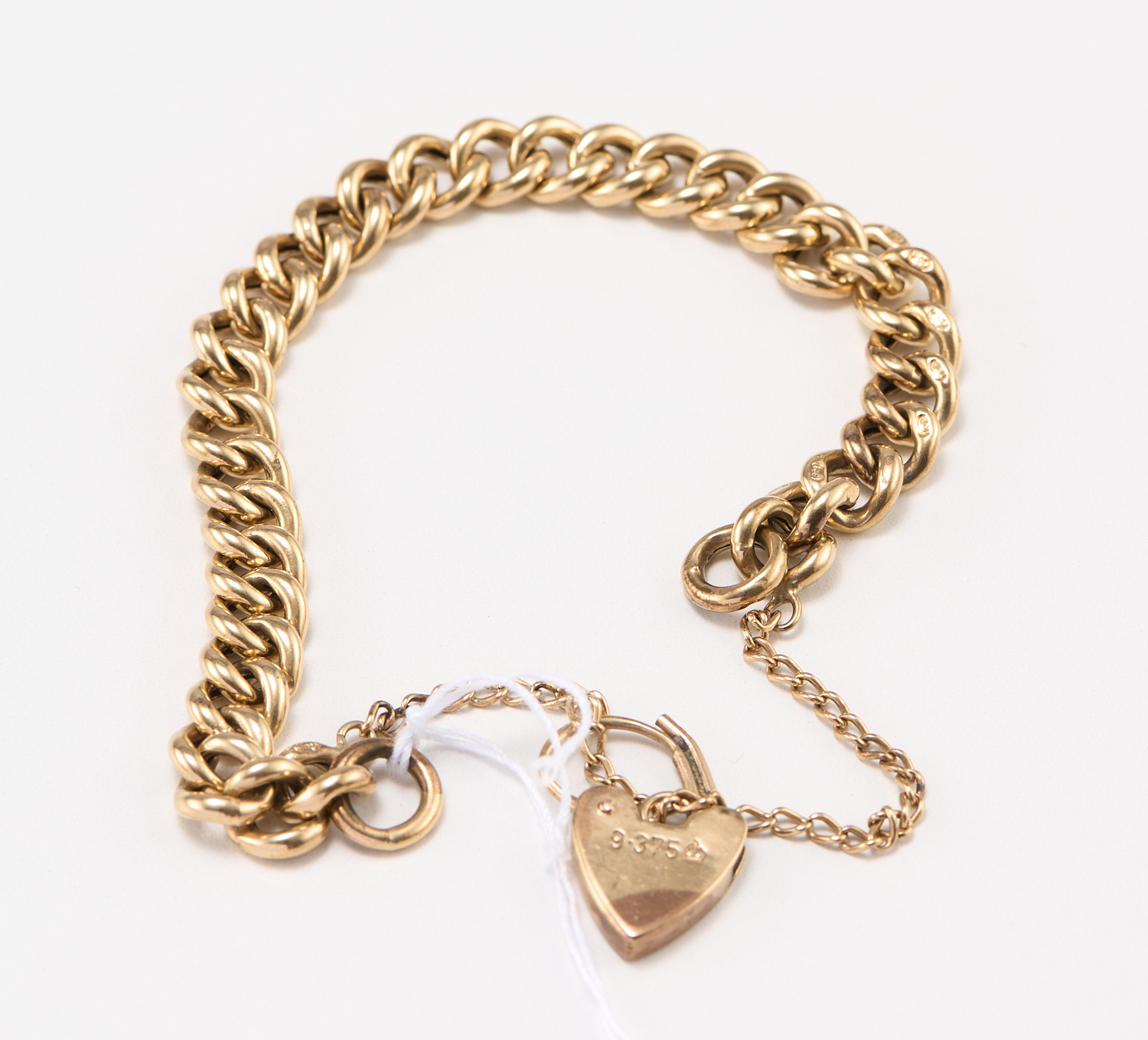 A CURB LINK BRACELET WITH HEART PADLOCK IN 9CT GOLD, APPOXIMATLEY 180MM, 16.90GMS