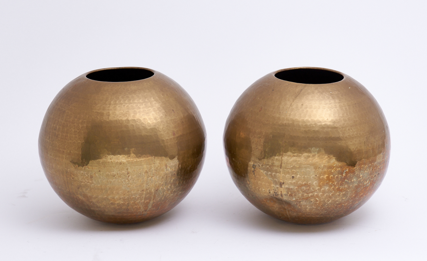 A PAIR OF HAND HAMMERED BRASS VASES H.24CM, LEONARD JOEL LOCAL DELIVERY: MEDIUM