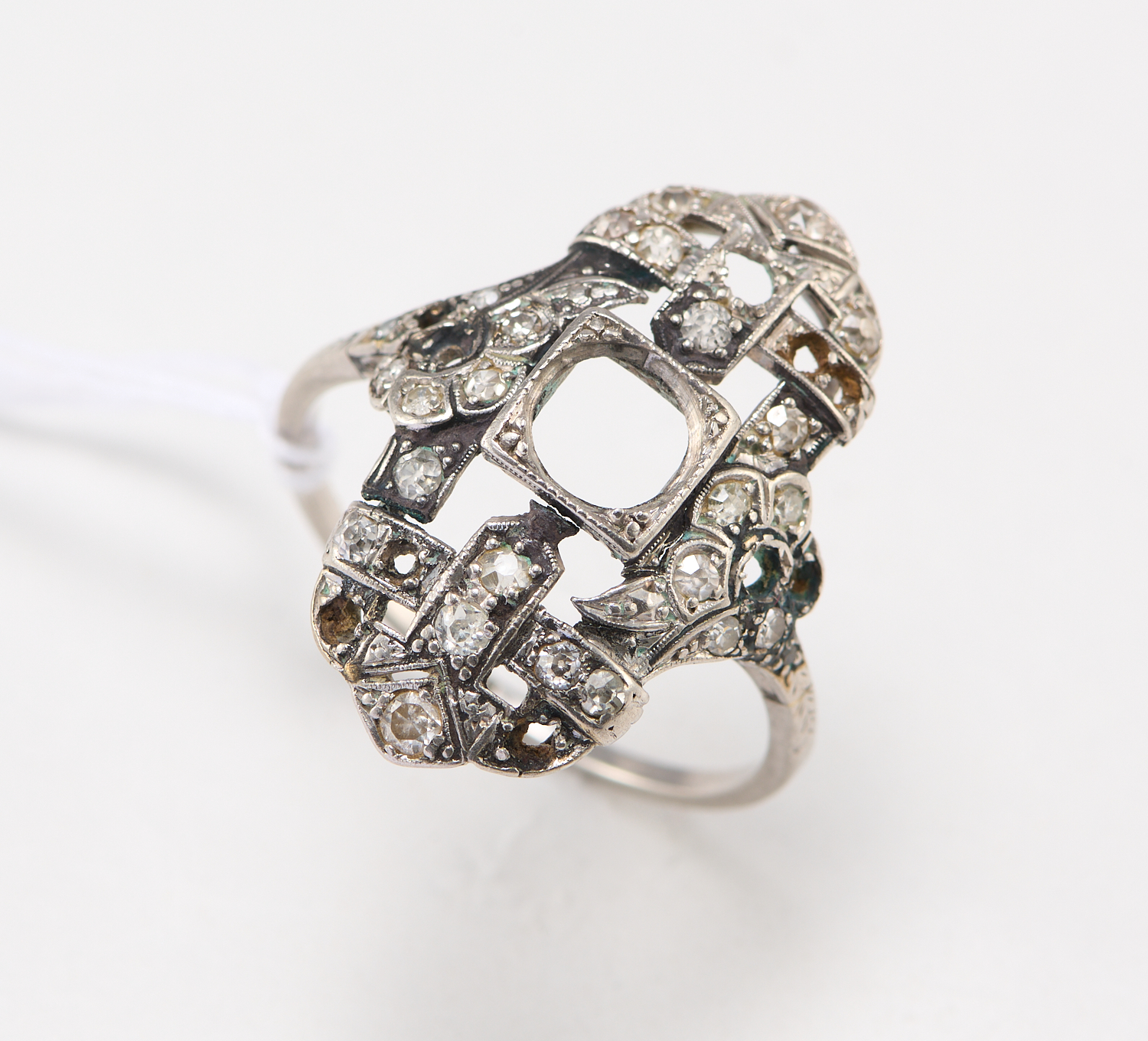 AN ANTIQUE DIAMOND RING MOUNT IN PLATINUM, RING SIZE S, A/F, 4.8GMS