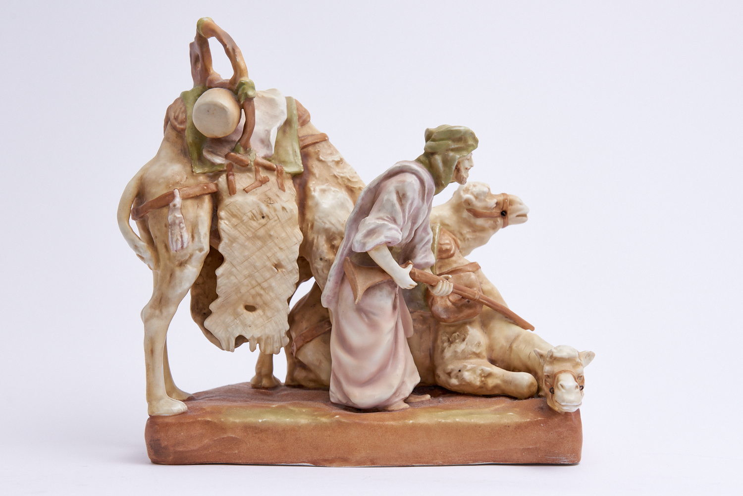 AN AMPHORA BEDOUIN CAMEL FIGURE GROUP, H.28CM, LEONARD JOEL LOCAL DELIVERY: MEDIUM