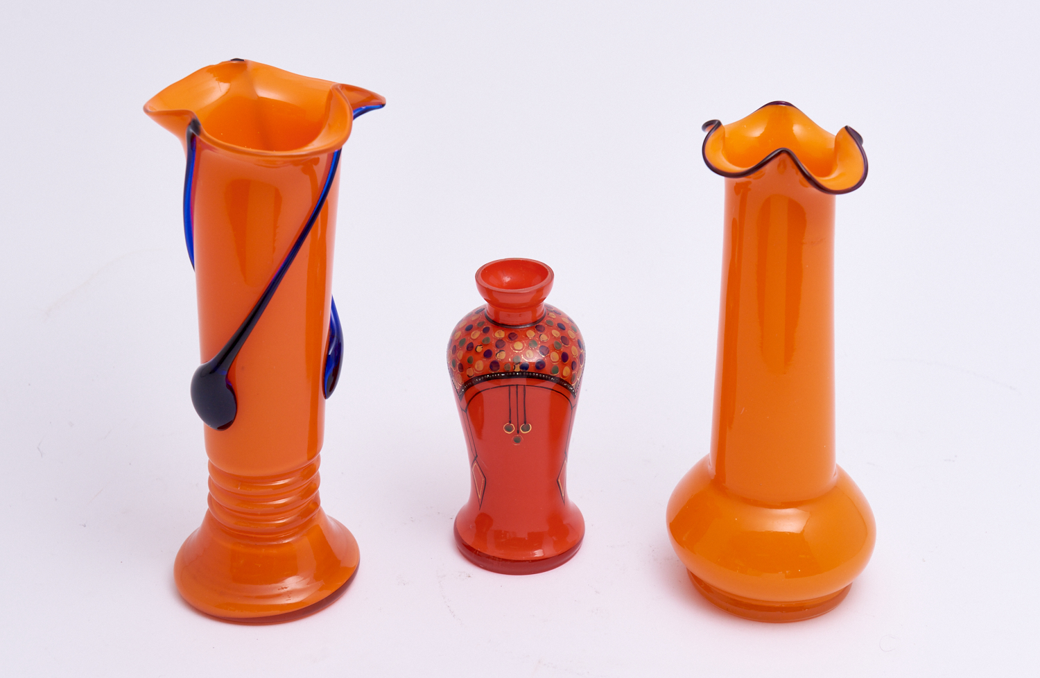 THREE BOHEMIAN TANGO VASES H.22CM (TALLEST), LEONARD JOEL LOCAL DELIVERY: MEDIUM