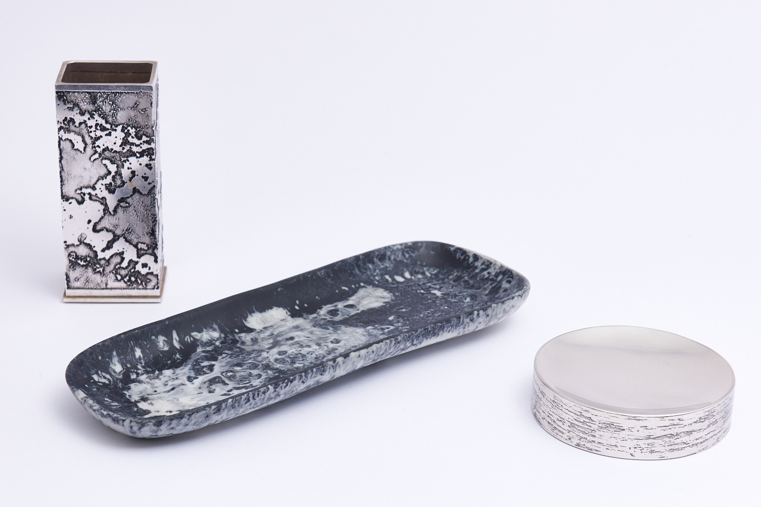 A TRIO OF MODERN AUSTRALIAN DESIGNS, WITH A BRUTALIST VASE BY STEPHEN DALY, A BRUTALIST BOWL, AND A RESIN PLATTER BY ALICE KEEP L.32CM (LARGEST), LEONARD JOEL LOCAL DELIVERY: SMALL