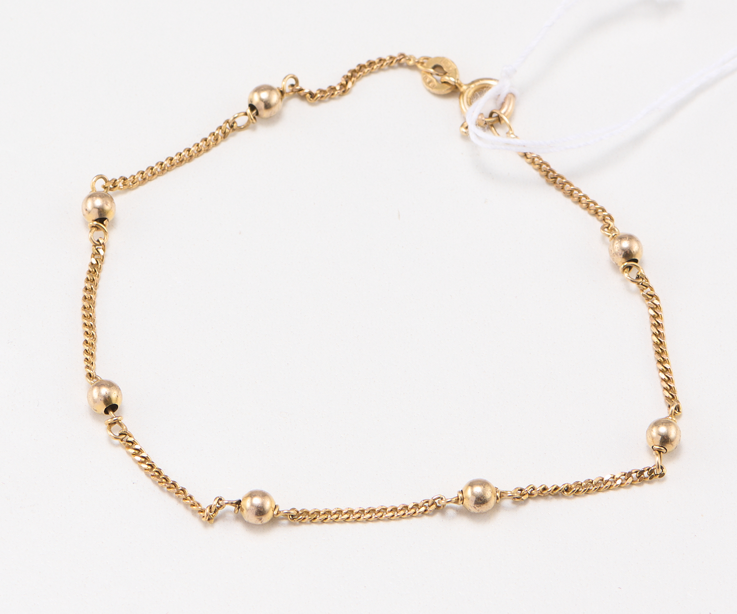 A FINE BALL AND CHAIN BRACELET IN 9CT GOLD, APPOXIMATELY 200MM, 2.22GMS