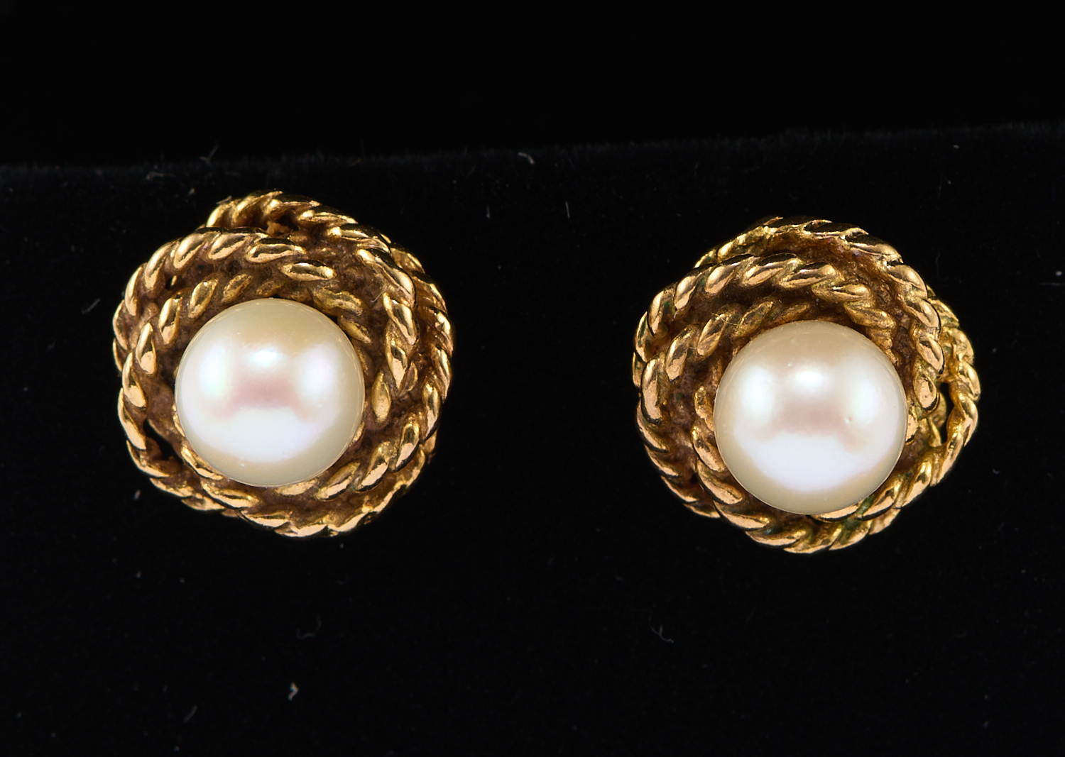 A PAIR OF CULTURED PEARL STUD EARRINGS IN 9CT GOLD, TO POST AND BUTTERFLY FITTINGS, 3.0GMS, BOXED
