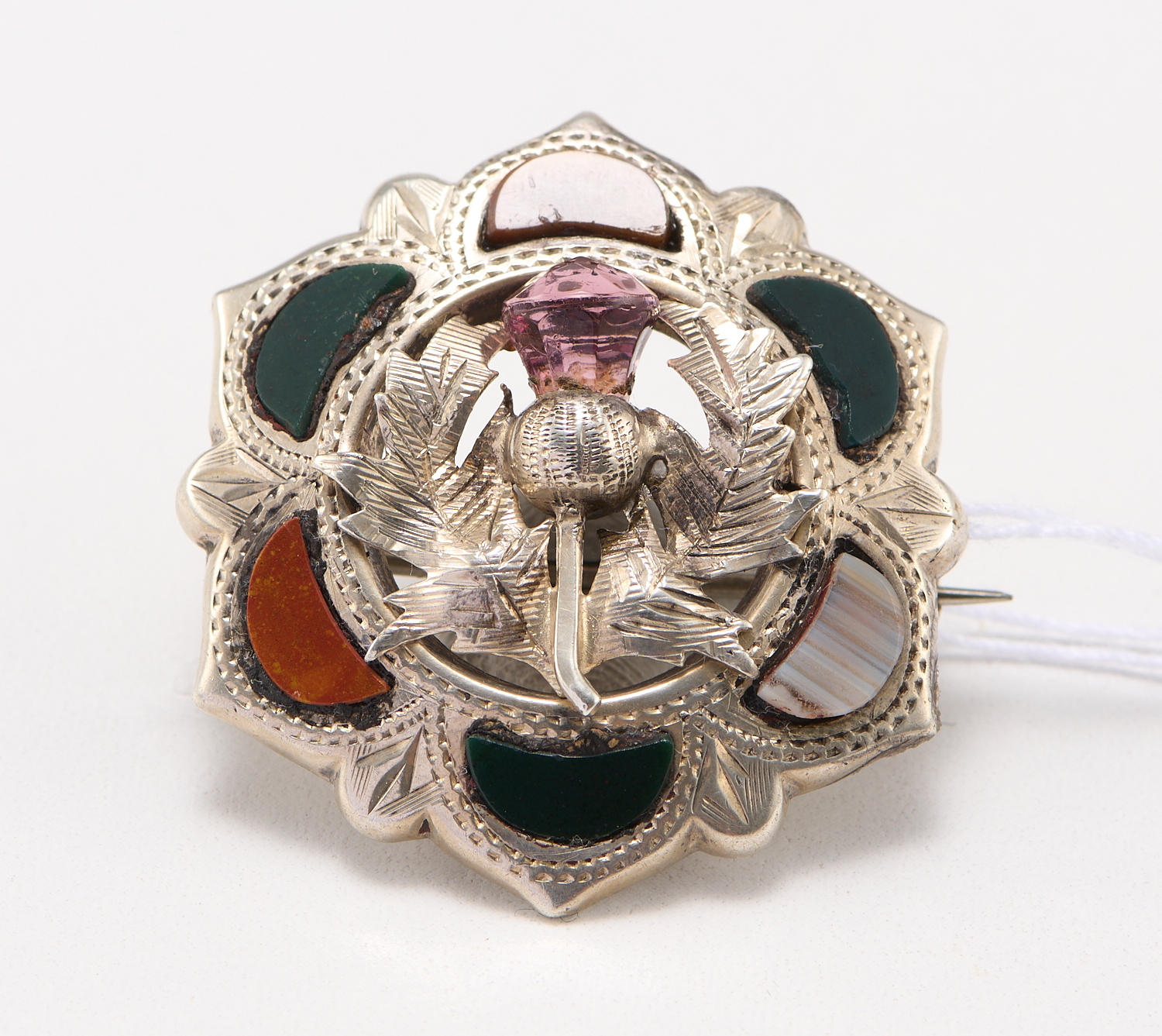 A VICTORIAN AGATE BROOCH IN STERLING SILVER, 35 x 35MM