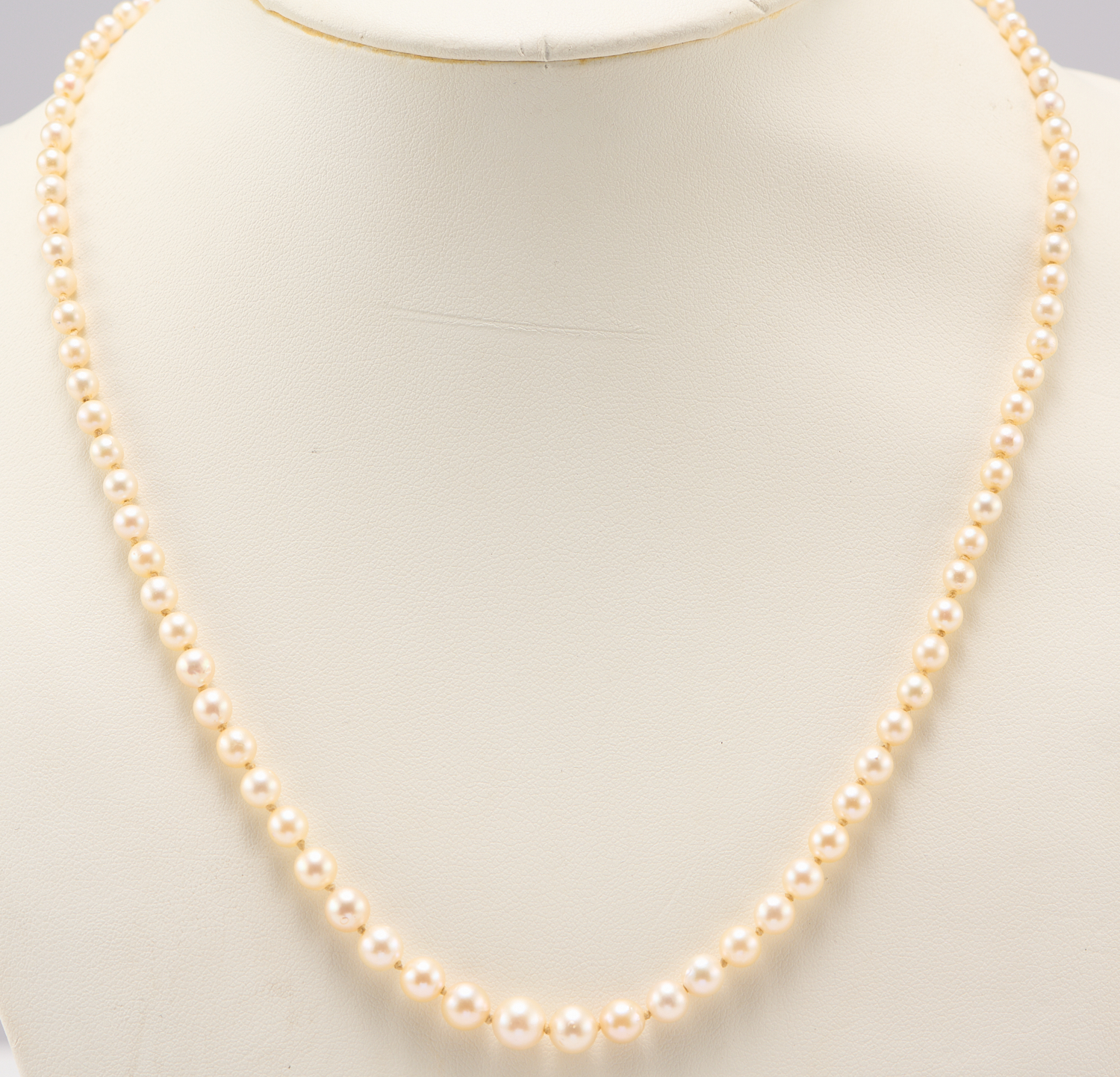 A VINTAGE STRAND OF CULTURED PEARLS TO A MARCASITE CLASP IN SILVER, LENGTH 500MM
