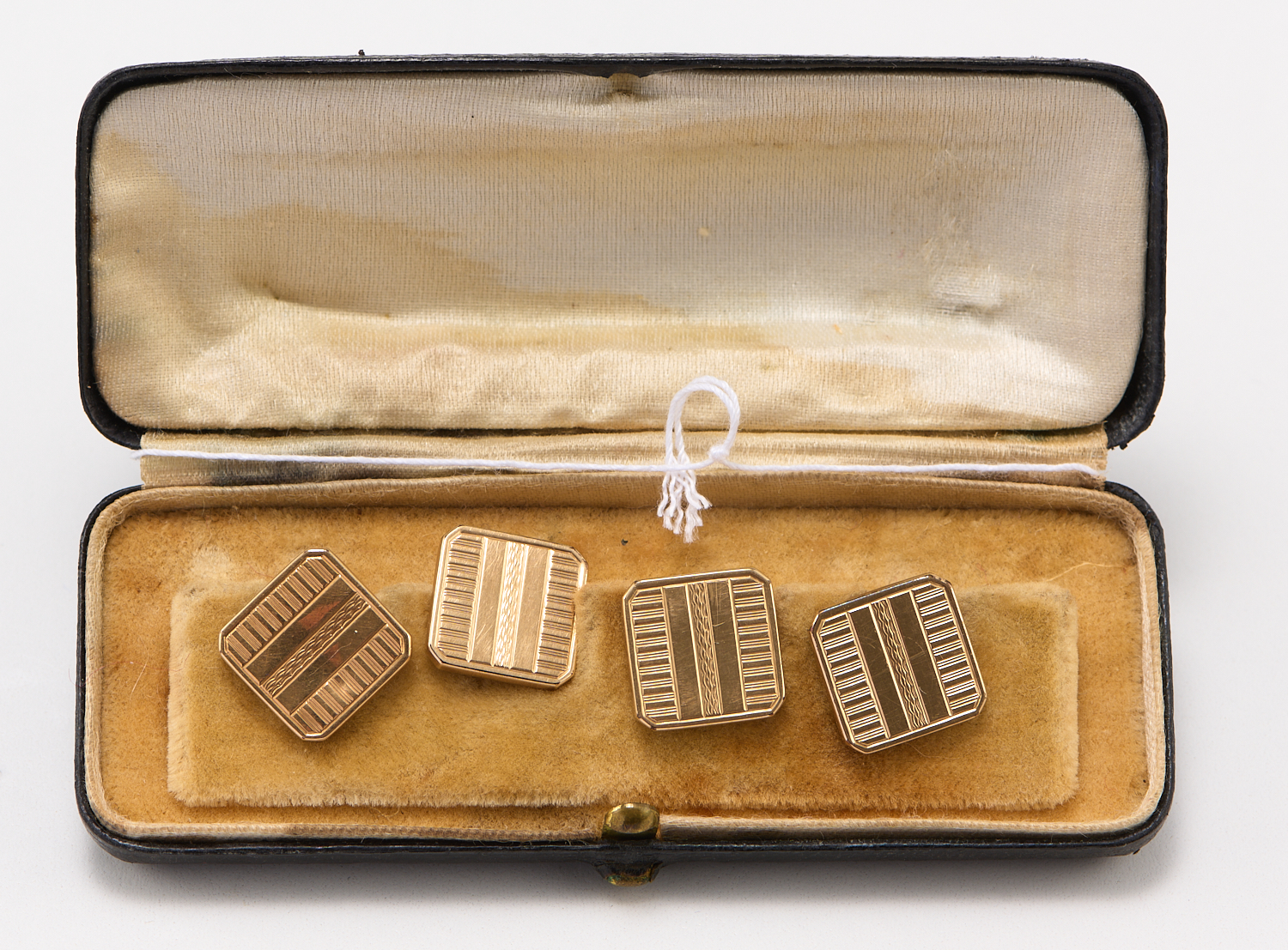 TWO PAIRS OF CUFFLINKS IN 18CT GOLD LINED METAL, BOXED