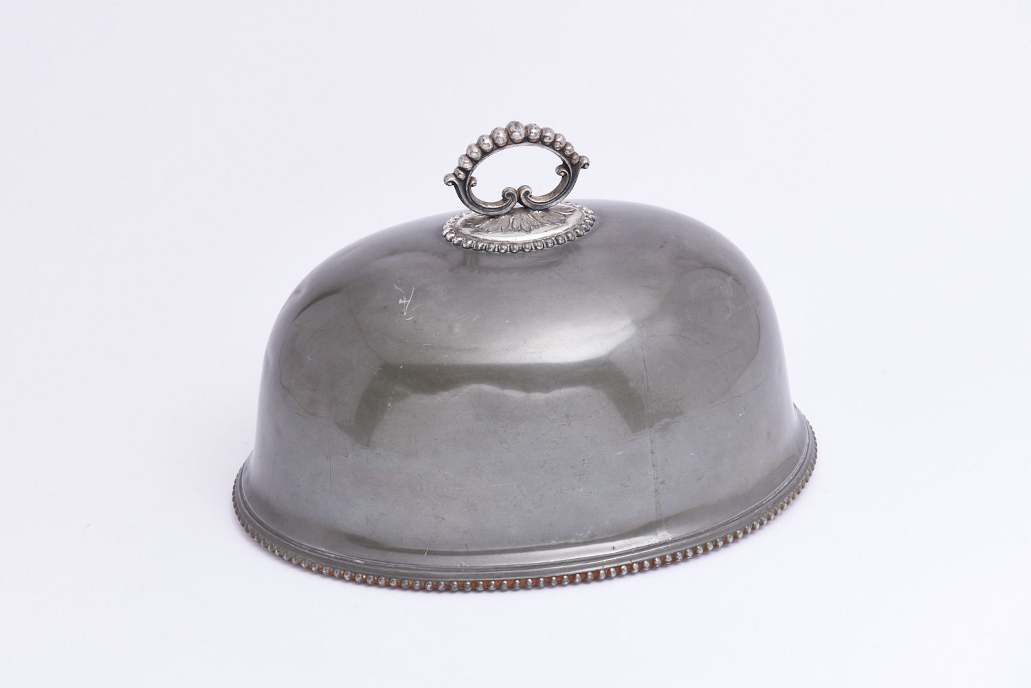 A JAMES DIXON AND SON SHEFFIELD SILVER PLATE BEAD EDGED MEAT COVER, W.35.5CM, LEONARD JOEL LOCAL DELIVERY: MEDIUM
