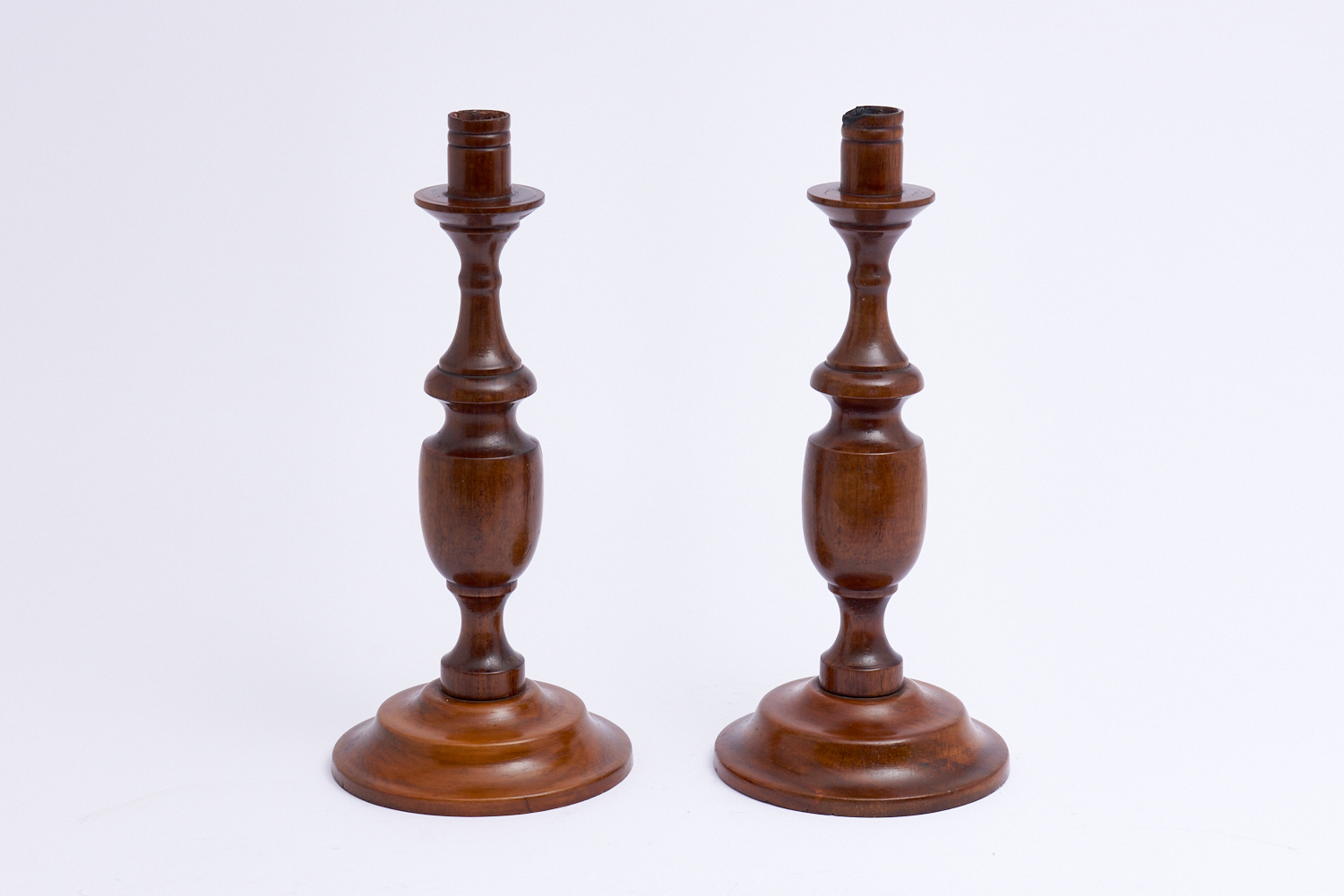 A PAIR OF AUSTRALIAN BLACKWOOD TURNED CANDLESTICKS, H.30.5CM, LEONARD JOEL LOCAL DELIVERY: SMALL