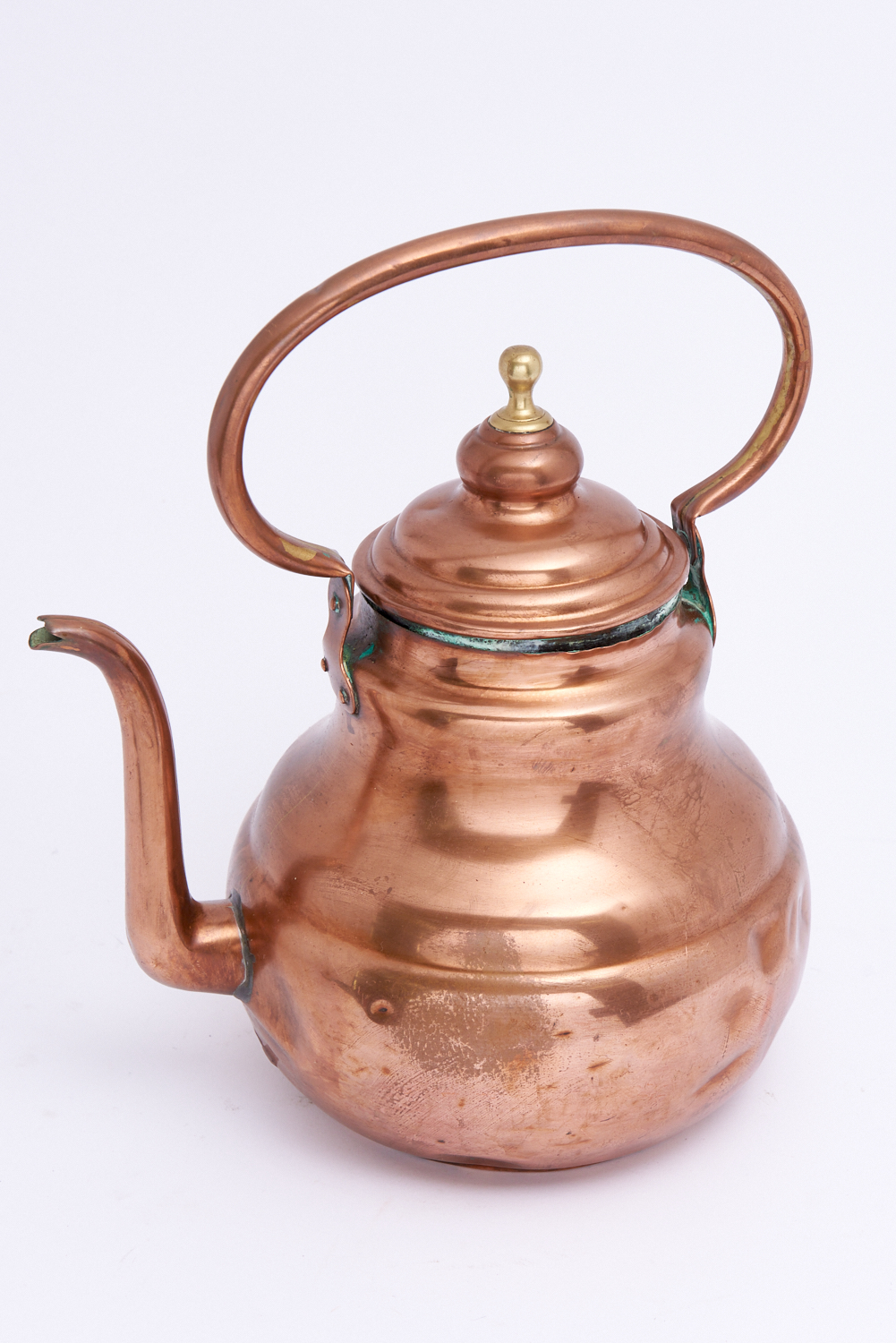 A FRENCH COPPER KETTLE WITH CURVED HANDLE, H.33CM, LEONARD JOEL LOCAL DELIVERY: MEDIUM