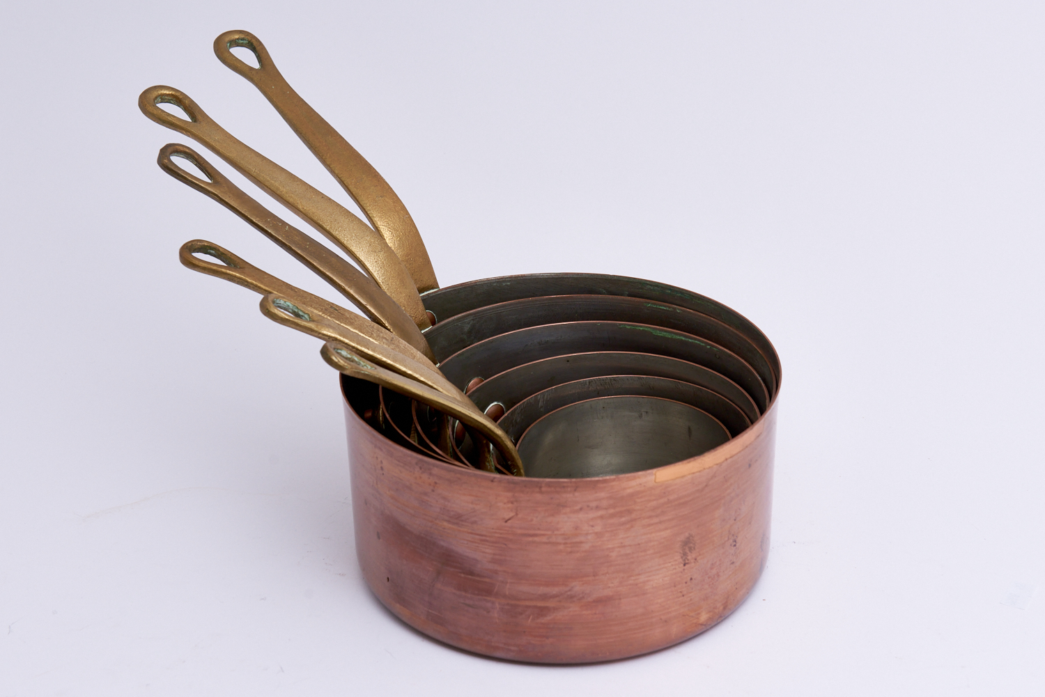A GRADUATED SET OF SIX COPPER SAUCEPANS, DIA.20.5CM, LEONARD JOEL LOCAL DELIVERY: MEDIUM