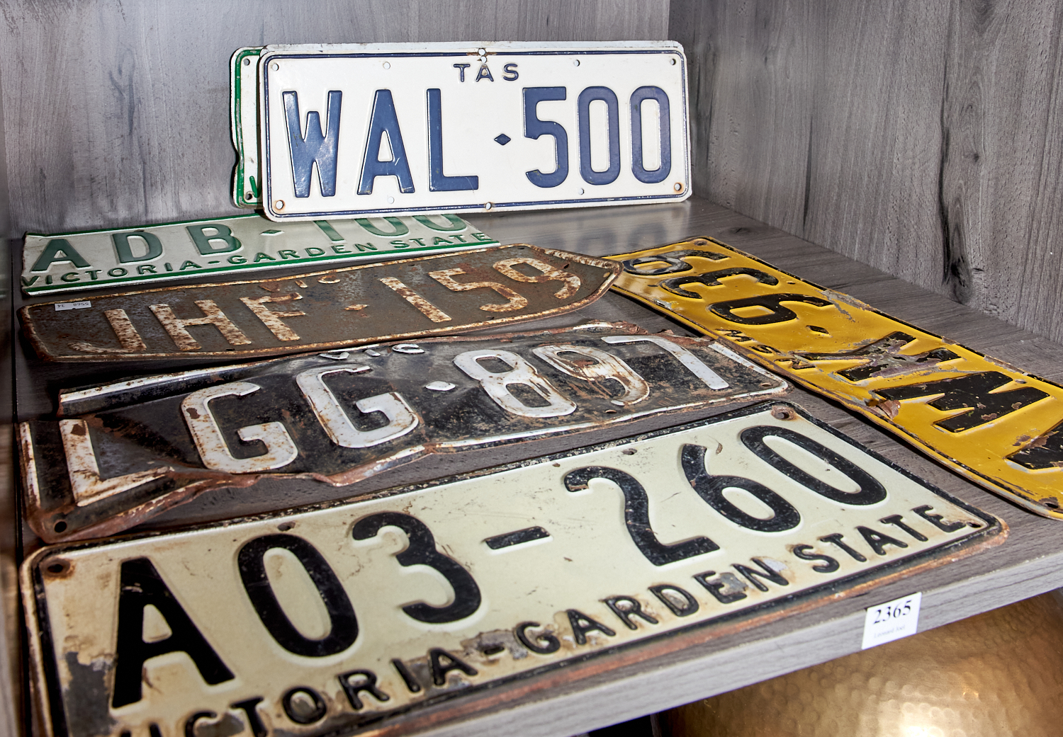 COLLECTION OF 8 VINTAGE AUSTRALIAN - NSW, VICTORIA AND TASMANIAN NUMBER PLATES, W.38CM, LEONARD JOEL LOCAL DELIVERY: MEDIUM