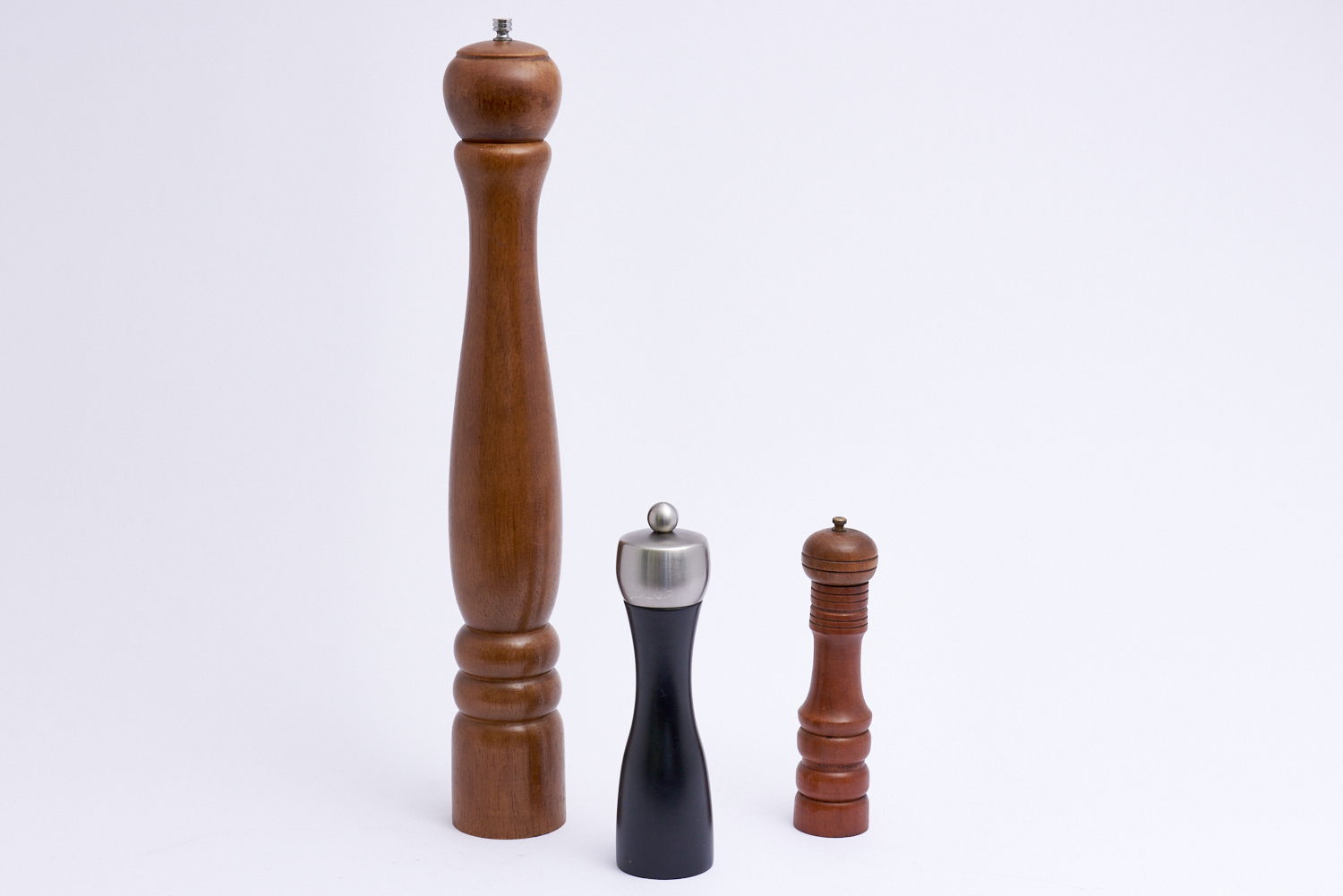 THREE PEPPER MILLS INCLUDING PEUGEOT, H.47CM (LARGEST), LEONARD JOEL LOCAL DELIVERY: SMALL