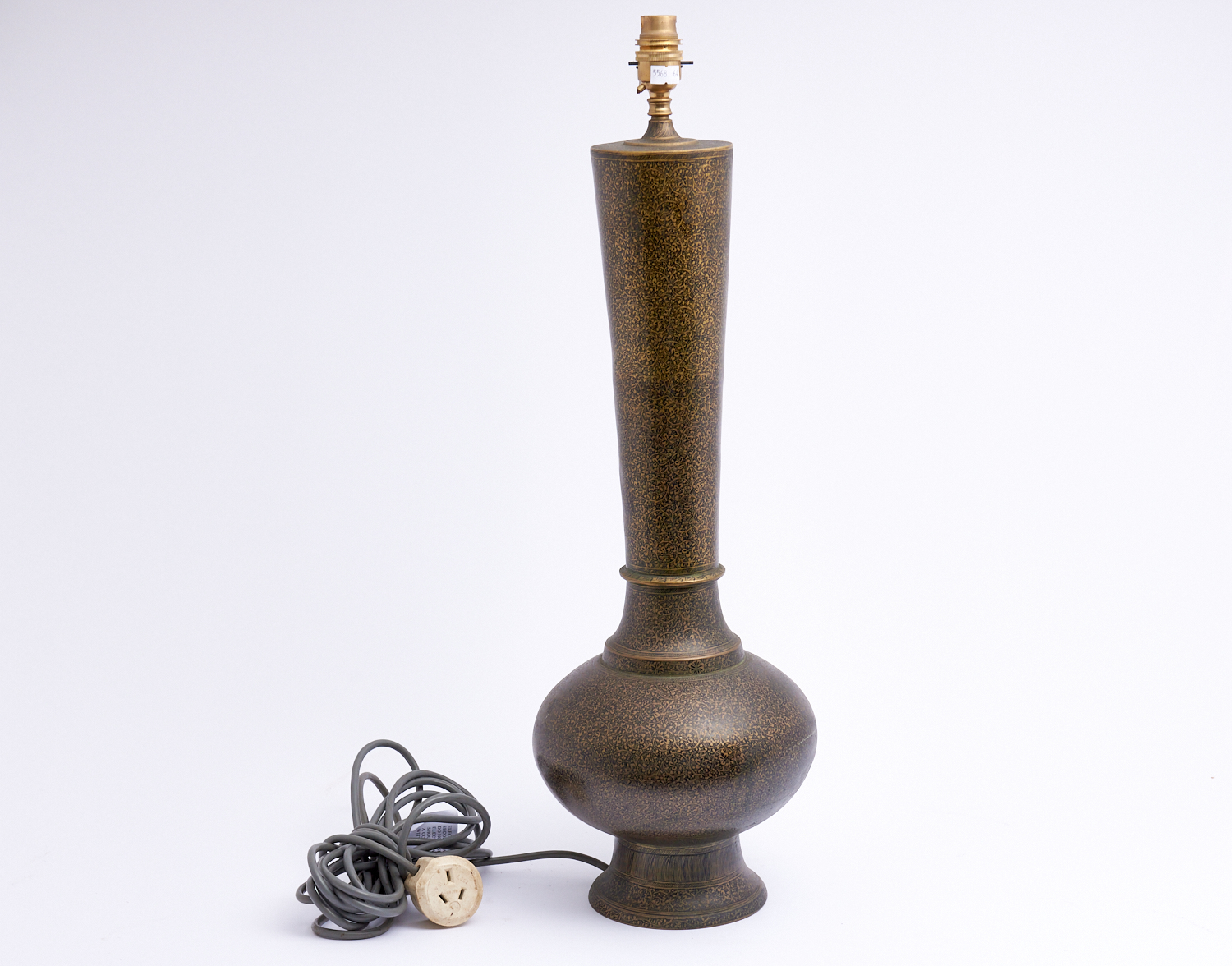 AN INDIAN ENGRAVED BRASS LAMP BASE, H.64CM, LEONARD JOEL LOCAL DELIVERY: MEDIUM