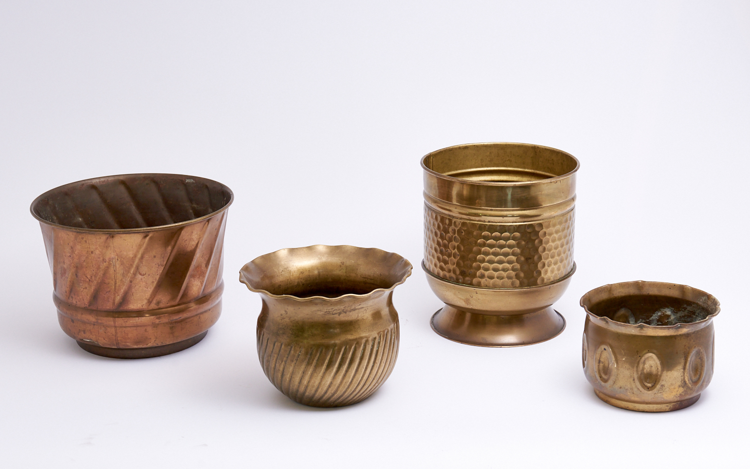 FOUR VINTAGE BRASS PLANTER POTS OF VARYING SIZE, H.18CM (LARGEST), LEONARD JOEL LOCAL DELIVERY: MEDIUM