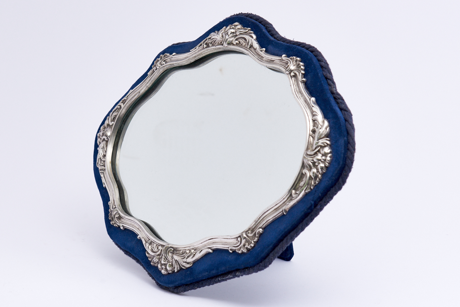 A SILVER PLATE VELVET BACKED TABLE MIRROR W.39CM, LEONARD JOEL LOCAL DELIVERY: SMALL