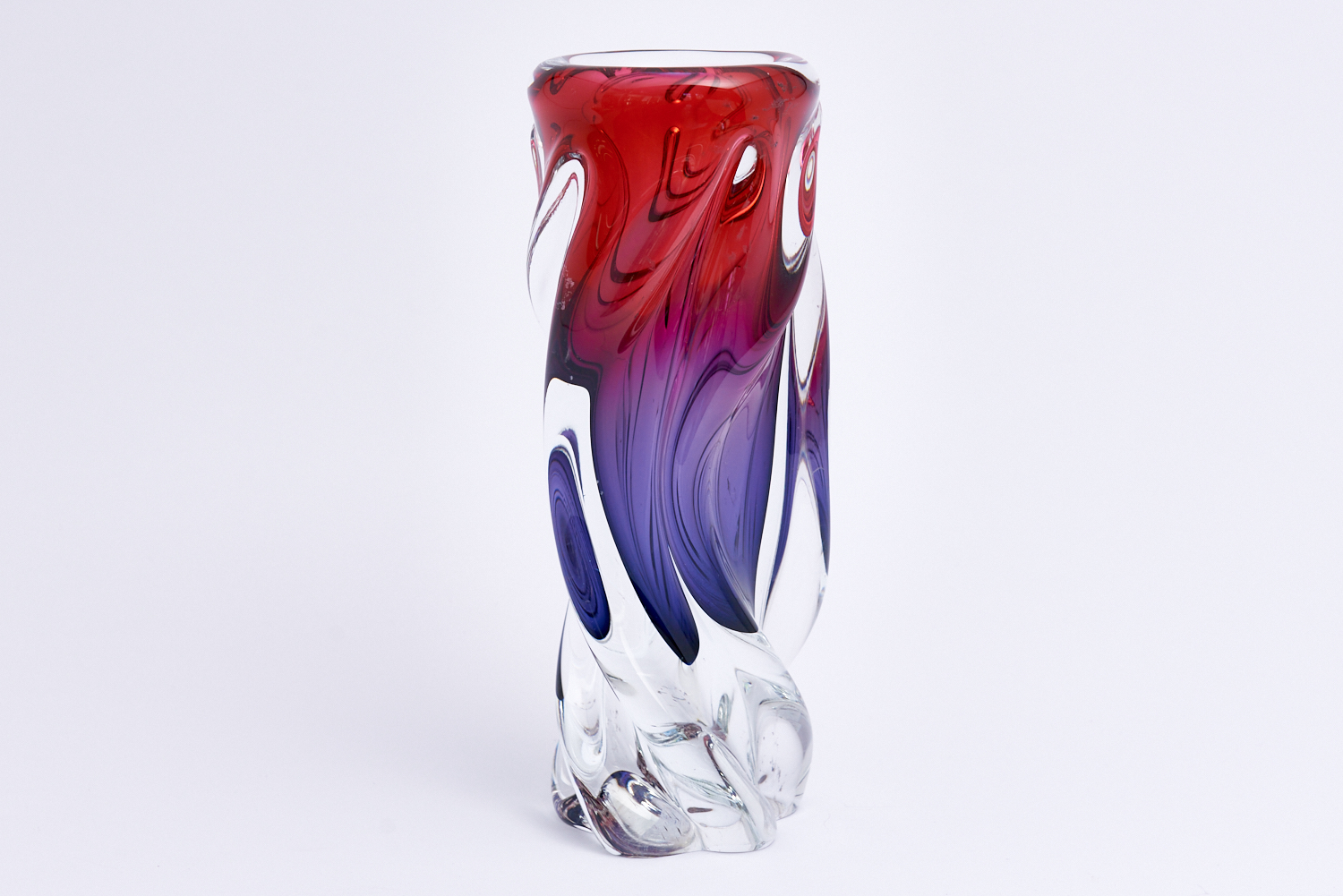 A TWIST FORM GLASS VASE H.23CM, LEONARD JOEL LOCAL DELIVERY: SMALL