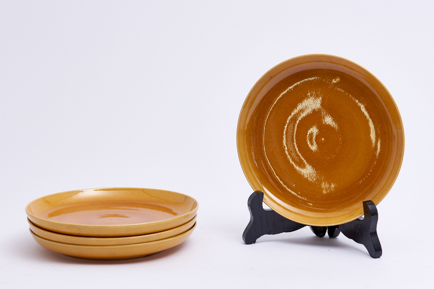 FOUR YELLOW GLAZED CHINESE PORCELAIN PLATES DIA.16CM, LEONARD JOEL LOCAL DELIVERY: SMALL