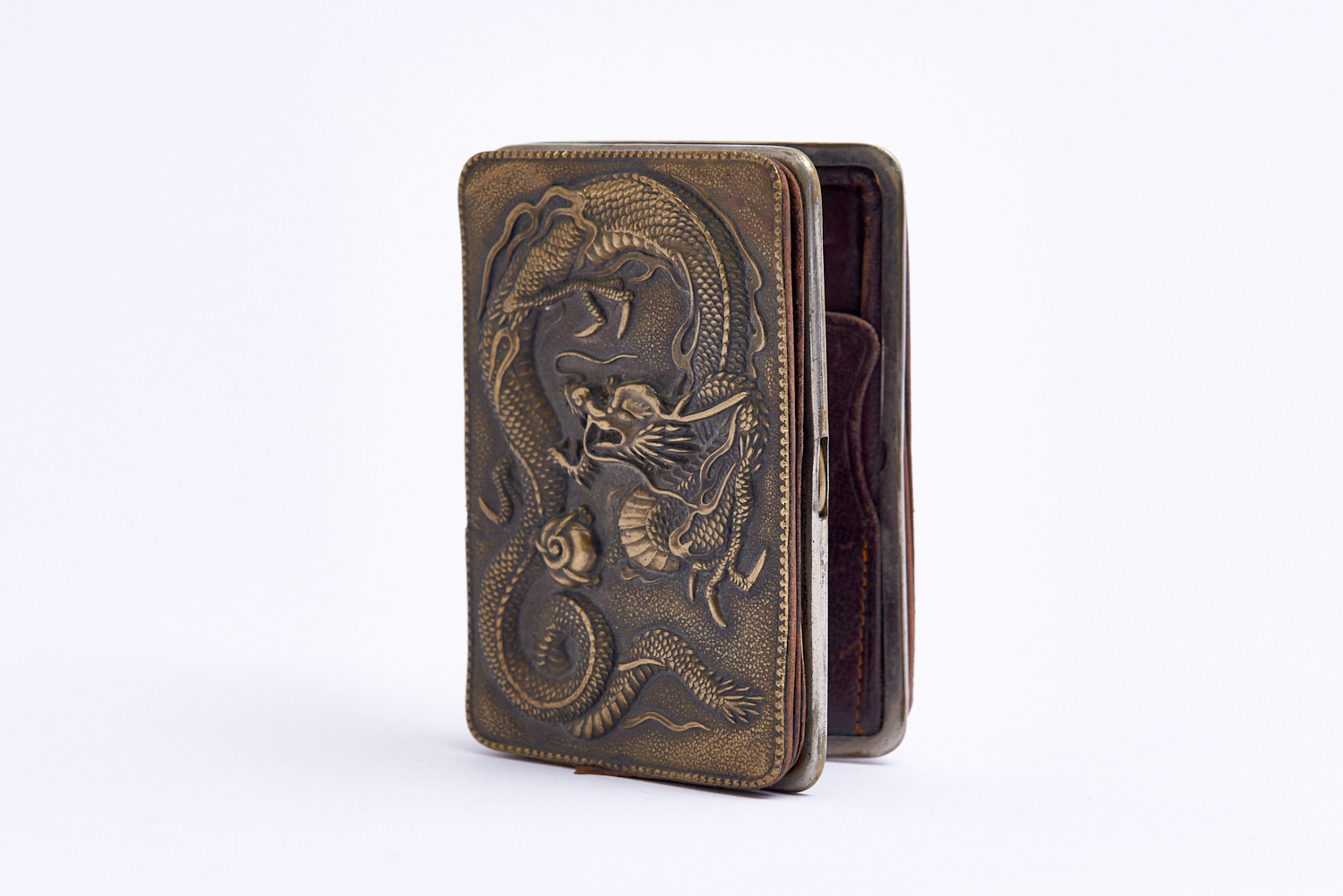 A DRAGON DECORATED DOUBLE SIDED PURSE H.6.8CM X W.10CM, LEONARD JOEL LOCAL DELIVERY: SMALL