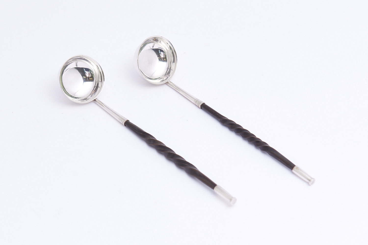 TWO HORN HANDLED TODDY LADLES L.20.5CM, LEONARD JOEL LOCAL DELIVERY: SMALL