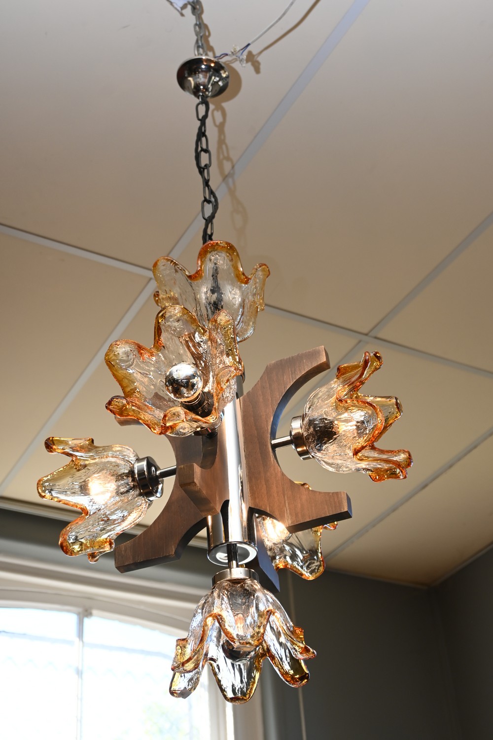 A MID CENTURY MAZZEGA FIVE BRANCH FLORAL GLASS CHANDELIER (H67 X D50 CM) (LEONARD JOEL DELIVERY SIZE: LARGE)