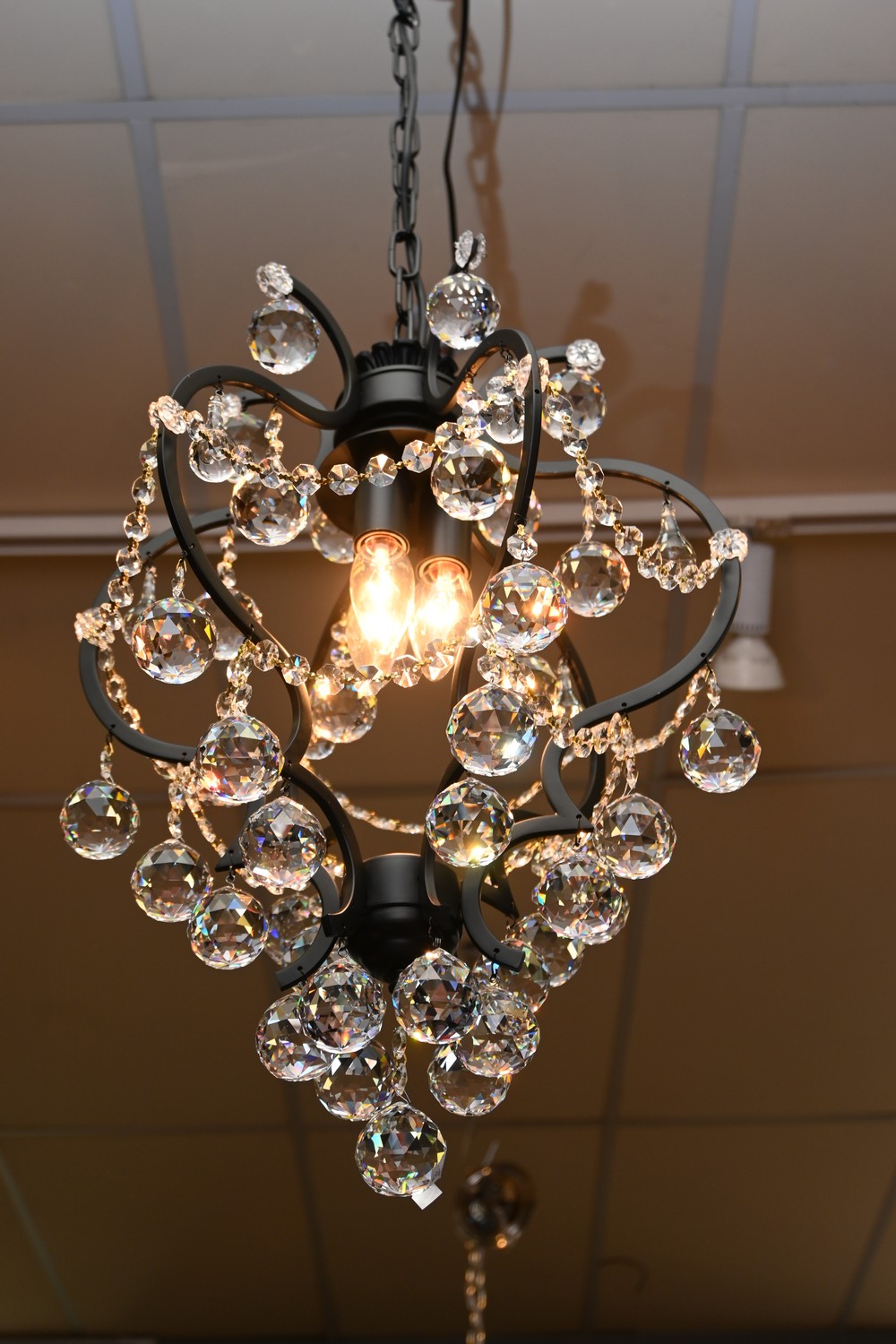 A CONTEMPORARY MODERN MATTE BLACK CRYSTAL BALL CHANDELIER (107H X 40D CM) (LEONARD JOEL DELIVERY SIZE: LARGE)