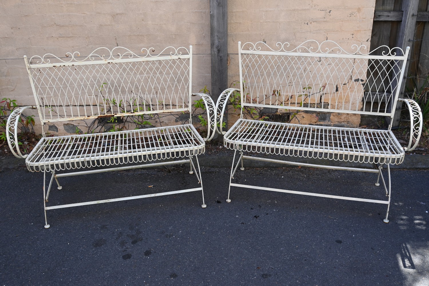 A PAIR OF METAL BENCHES (A/F) (100H X 116W X 56D CM) (LEONARD JOEL DELIVERY SIZE: X-LARGE)