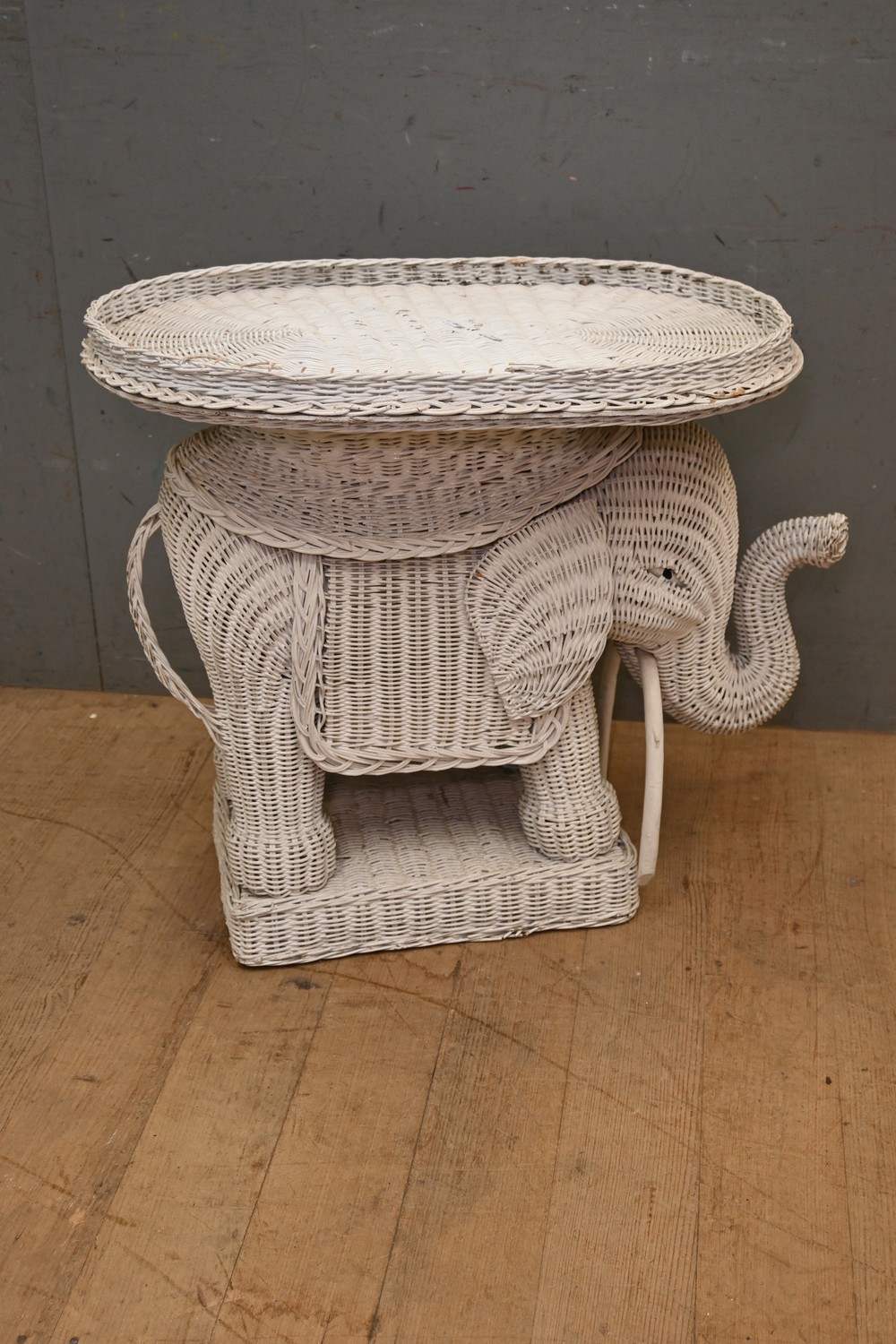 A WICKER ELEPHANT SIDE TABLE WITH LIFT OFF TRAY (A/F) (55H X 64W X 42D CM) (LEONARD JOEL DELIVERY SIZE: MEDIUM)