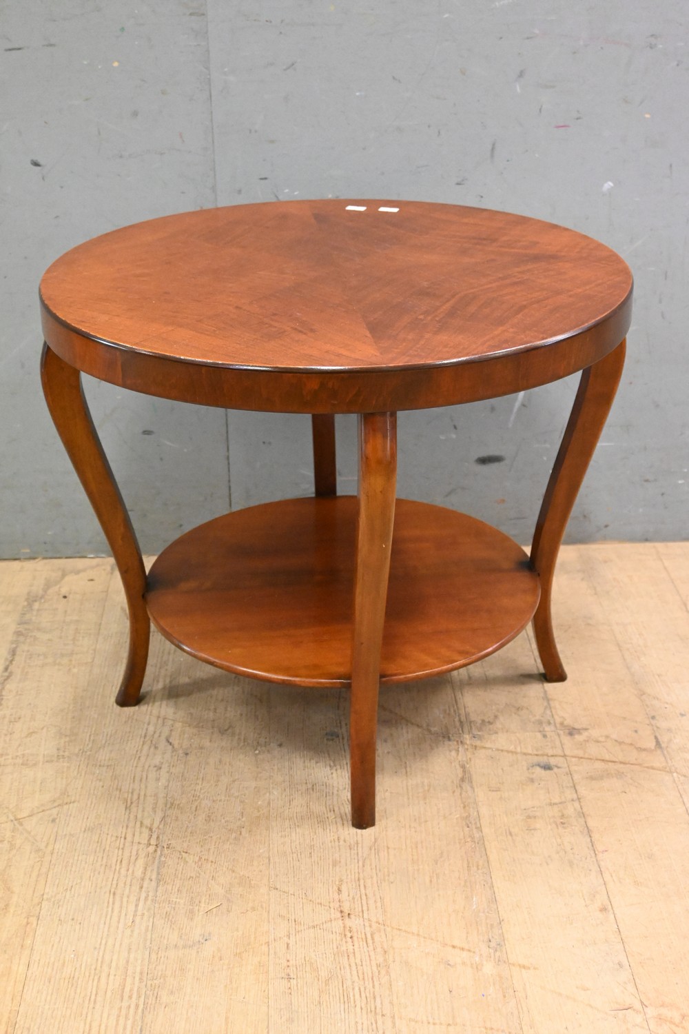 AN ART DECO CIRCULAR WALNUT TWO TIER LAMP TABLE (51H X 60D CM) (LEONARD JOEL DELIVERY SIZE: LARGE)
