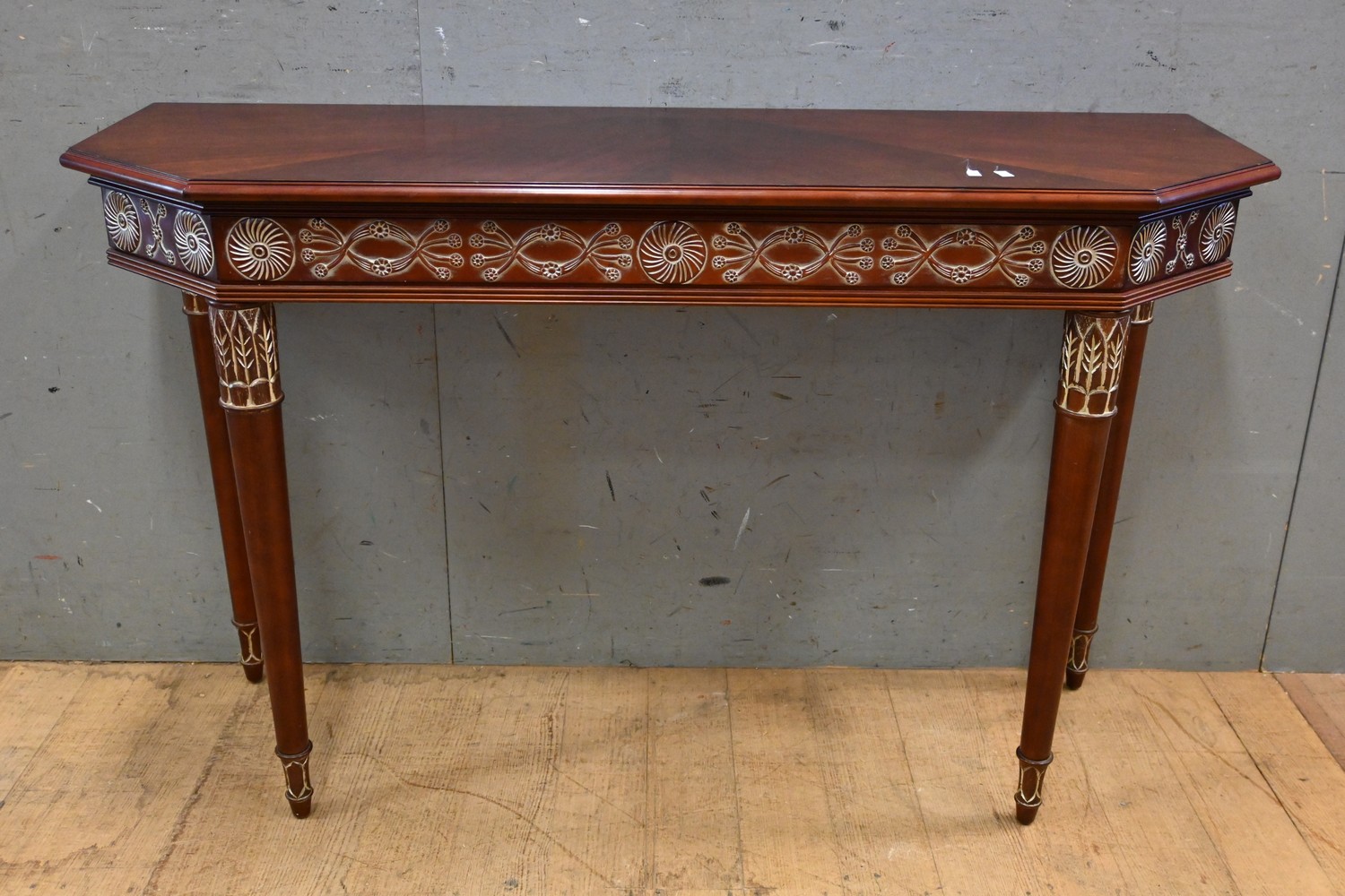 A REGENCY STYLE HALL TABLE WITH CARVED APRON (76H X 122W X 40D CM) (LEONARD JOEL DELIVERY SIZE: LARGE)