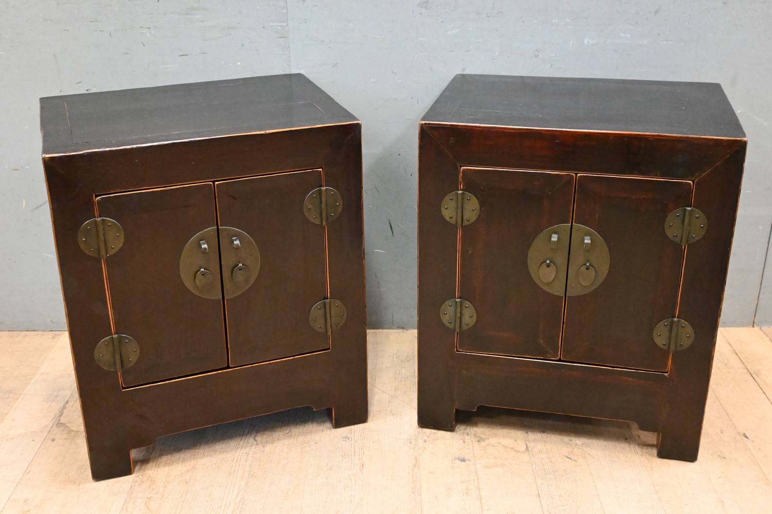 A PAIR OF CHINESE BEDSIDE CABINETS (64H X 54W X 42D CM) (LEONARD JOEL DELIVERY SIZE: LARGE)